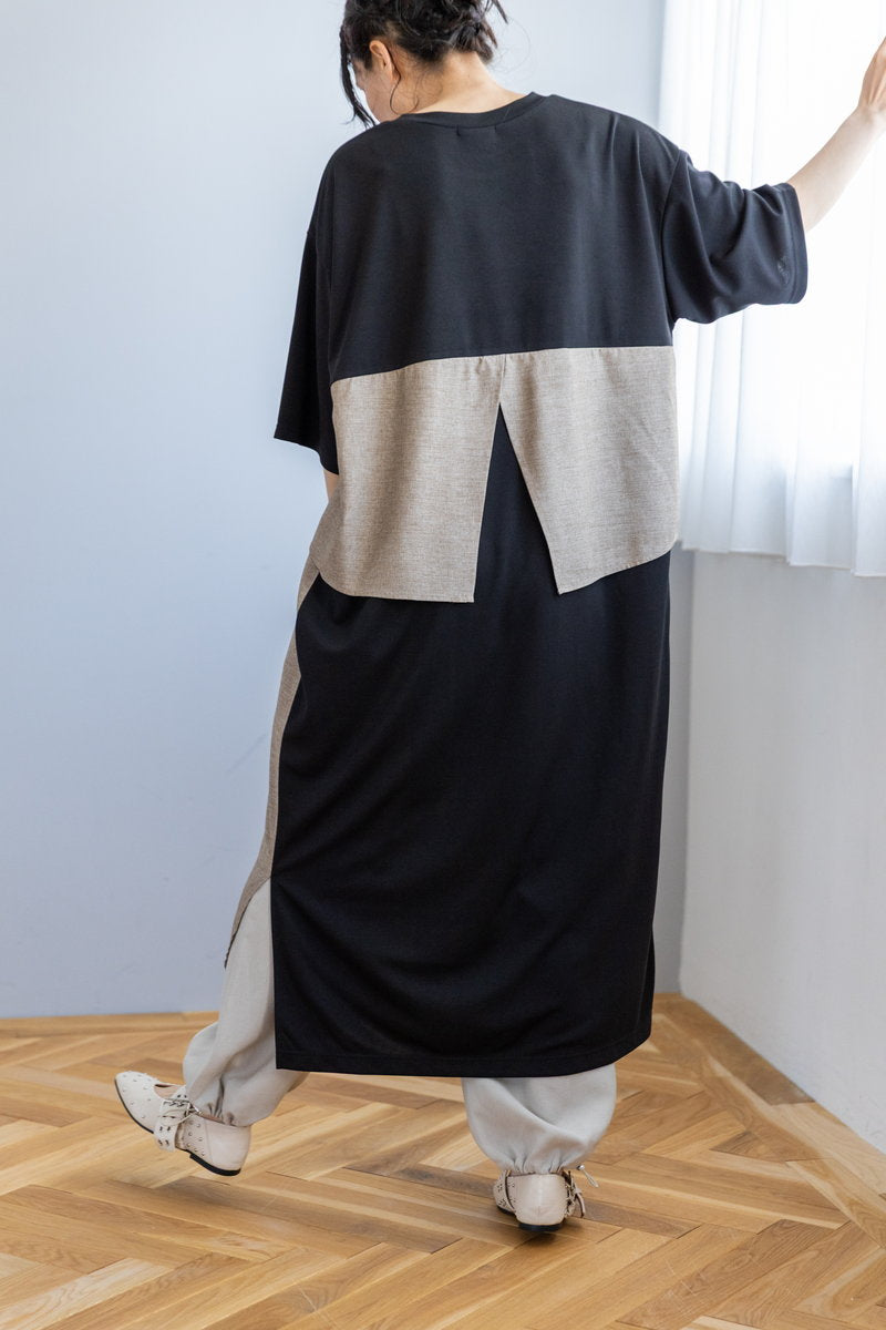 ユニークなシャツ切替のリラクシングなワンピースは、ボトムレイヤードで重心を下げて。デザインのボリューム感とのバランサーとなる、重要なピース。