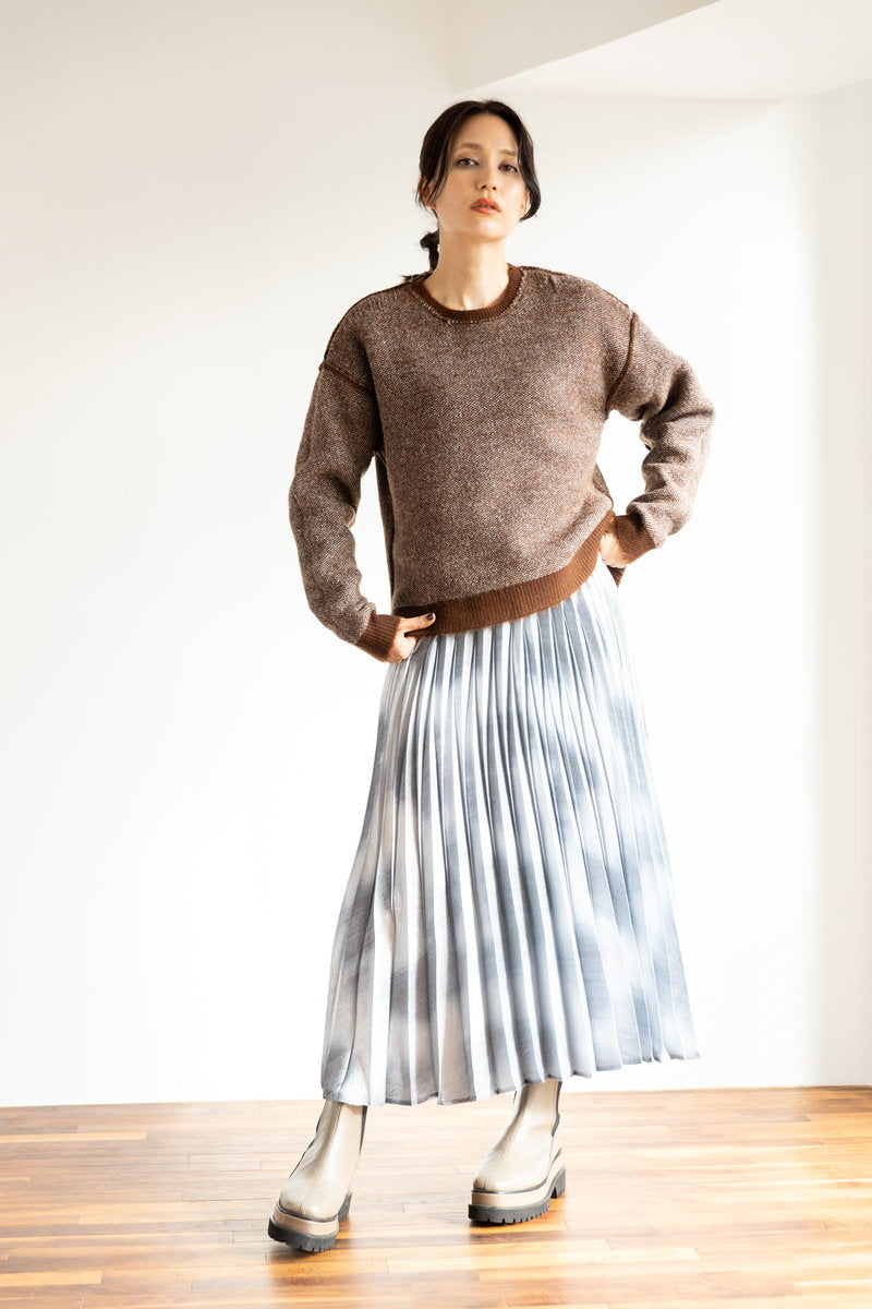 TOP > OSMOSIS STYLE OSMOSIS-STYLE-2025aw-DEC-vol1-04 2025-11-05 カジュアルアイテムのニットが、ファーライクな毛足でリュクスに変化。着痩せを望むなら、プリーツスカートで縦ラインを意識。 着用アイテム