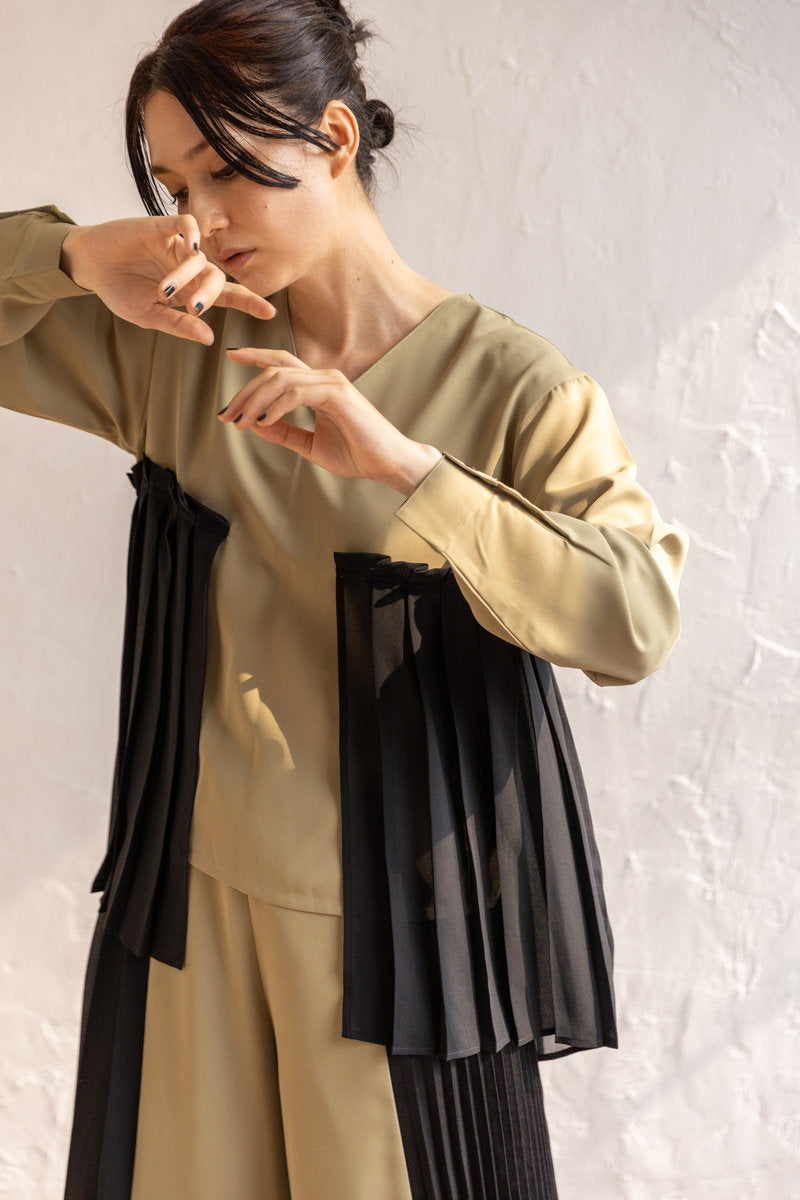 TOP > OSMOSIS STYLE OSMOSIS-STYLE-2025aw-OCT-vol2-07 2025-09-10 クラス感のあるプリーツのセットアップは、秋冬のパーティシーンに。軽やかな透け感と落ち着きのあるシルエットがグッドバランス。 着用アイテム