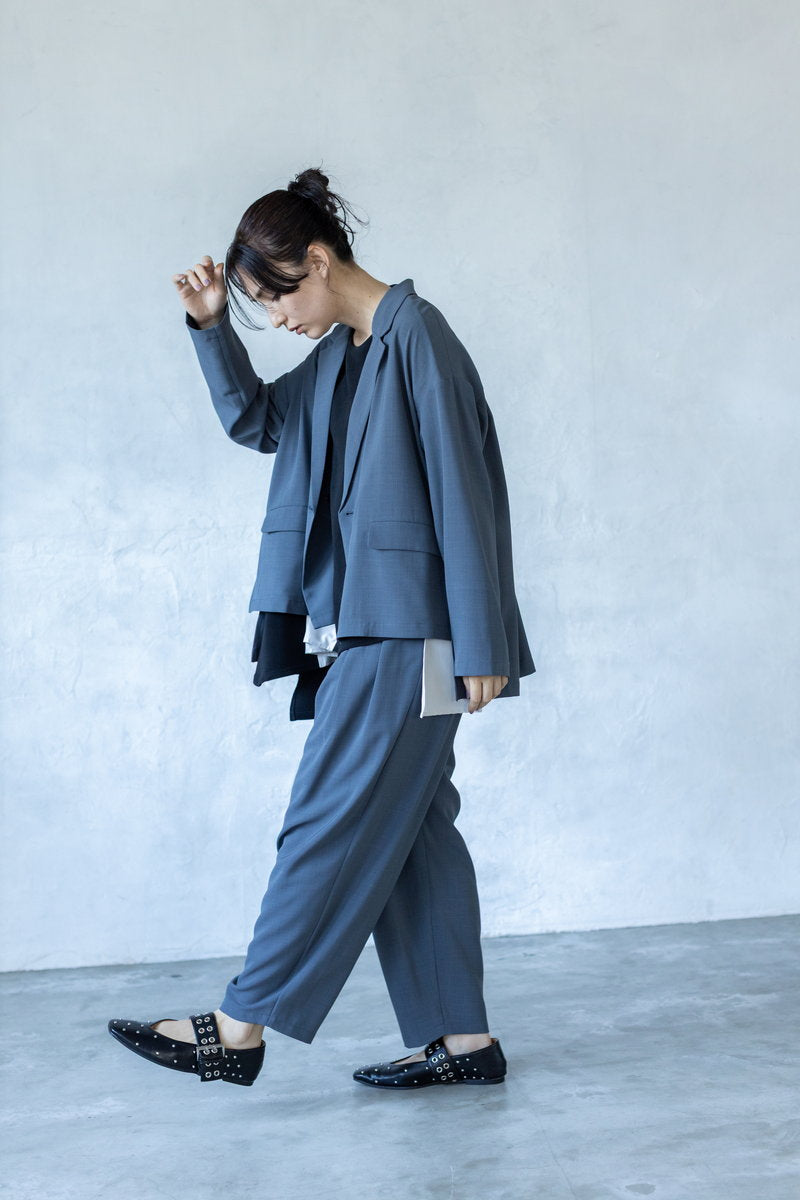 強くしなやかな女性らしさを引き立てる、オーバーサイズのセットアップ。端正なオフィスコアは勿論、ラフなカットソーを忍ばせて、デイリーユースにカジュアルダウン。