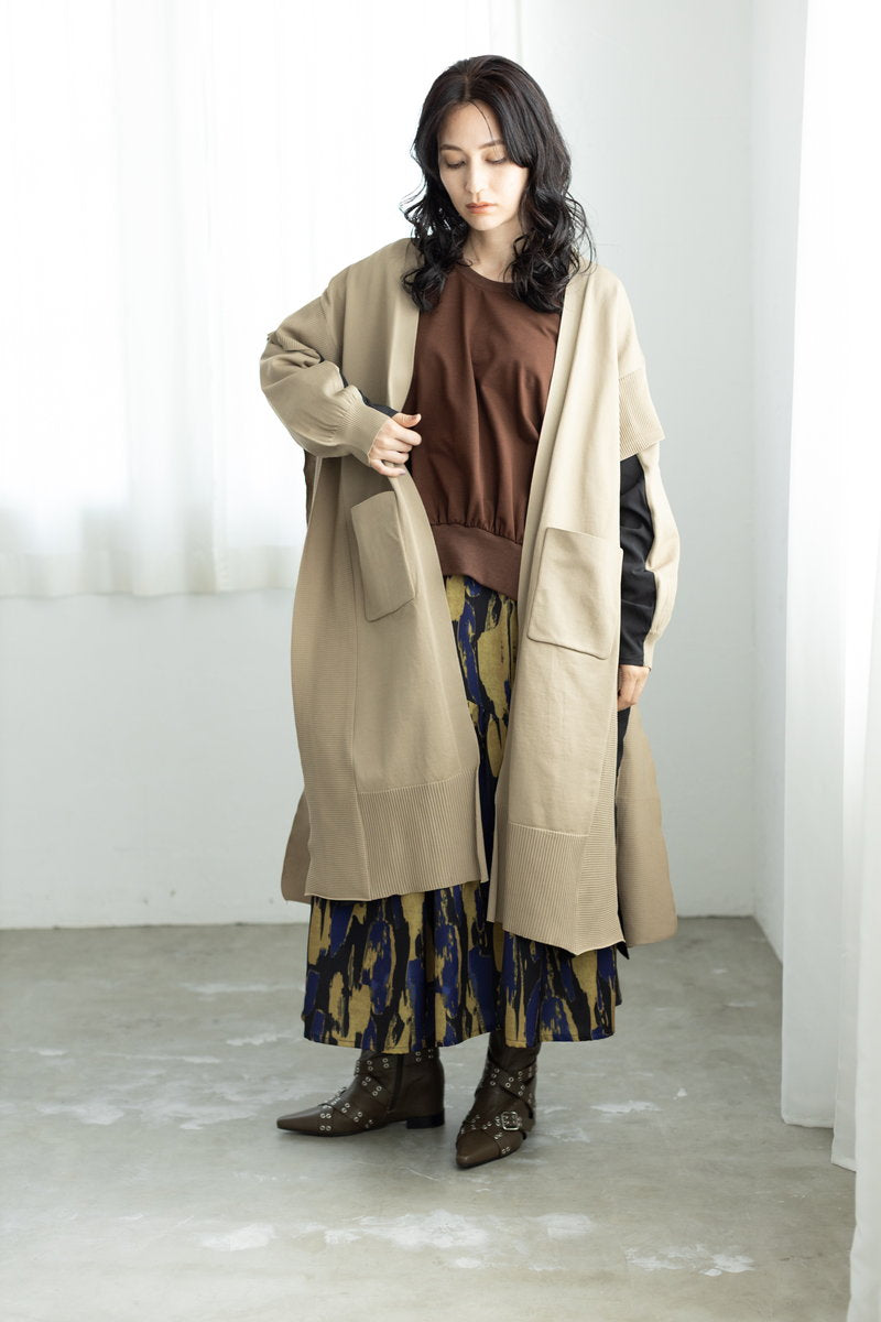 ハリを感じるビッグシルエットを、力が抜けたニットガウンでエフォートレスな装いに。 今季もこっくりしたBROWNが今っぽさへの近道。