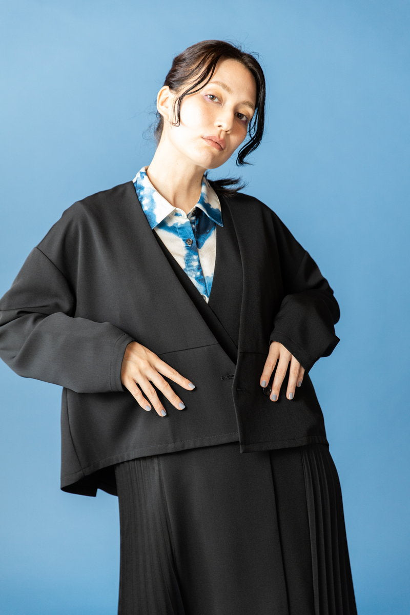 ジレとワンピースの両立が叶えば、コーディネートは無限大。 カラー遊びを効かせつつ、ショートジャケットを羽織れば一気にセレモニースタイルへとクラスアップ。