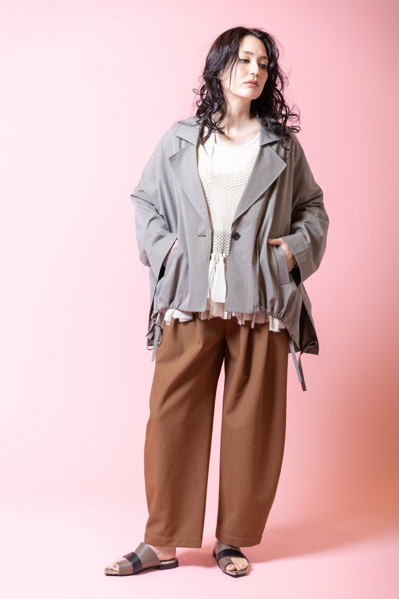 レイヤードを楽しめる軽やかなトップスに、 落ち着いたトーンのパンツを合わせてバランス良く。 素材感のコントラストが引き立つ、程よく力の抜けたスタイリング。