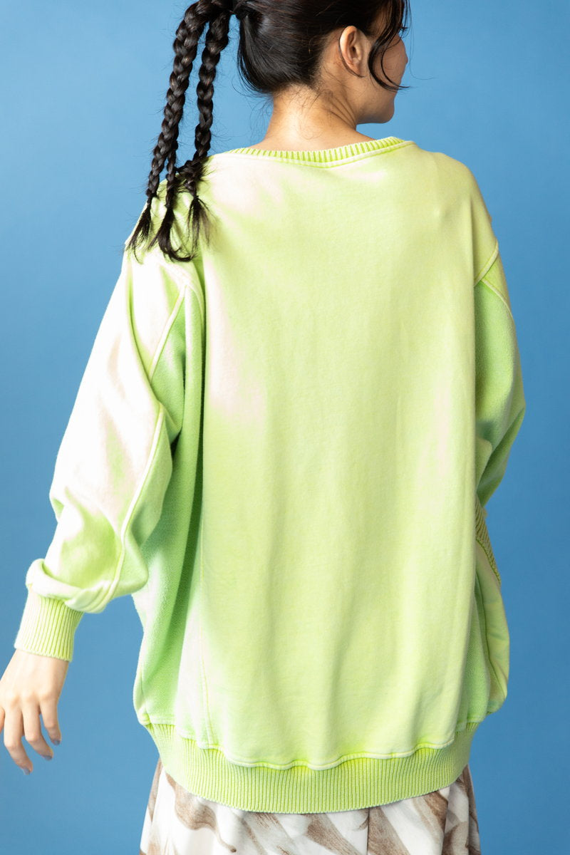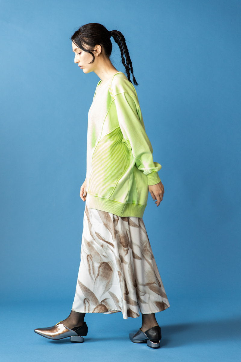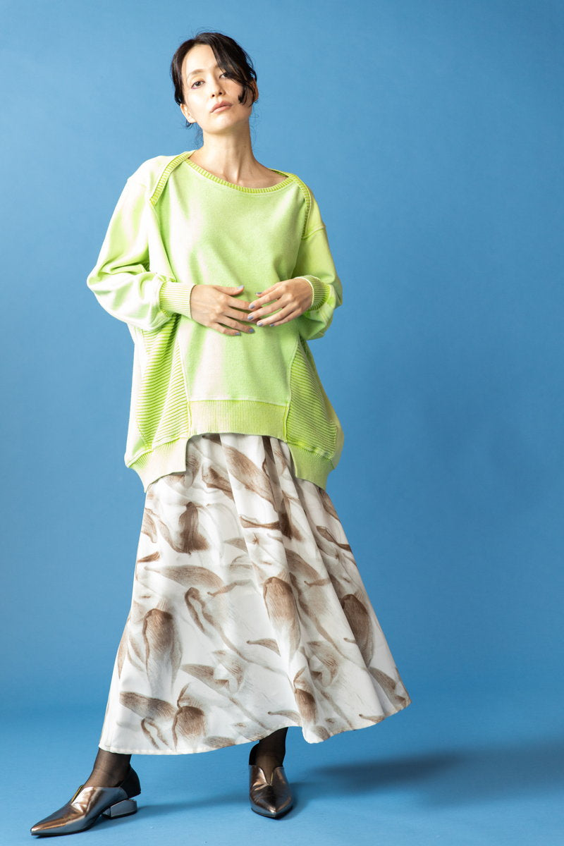 ラフなオーバートップスを、敢えてレディな足元でクラスアップ。ポジティブなネオンカラーで春のムードを呼び込んで。