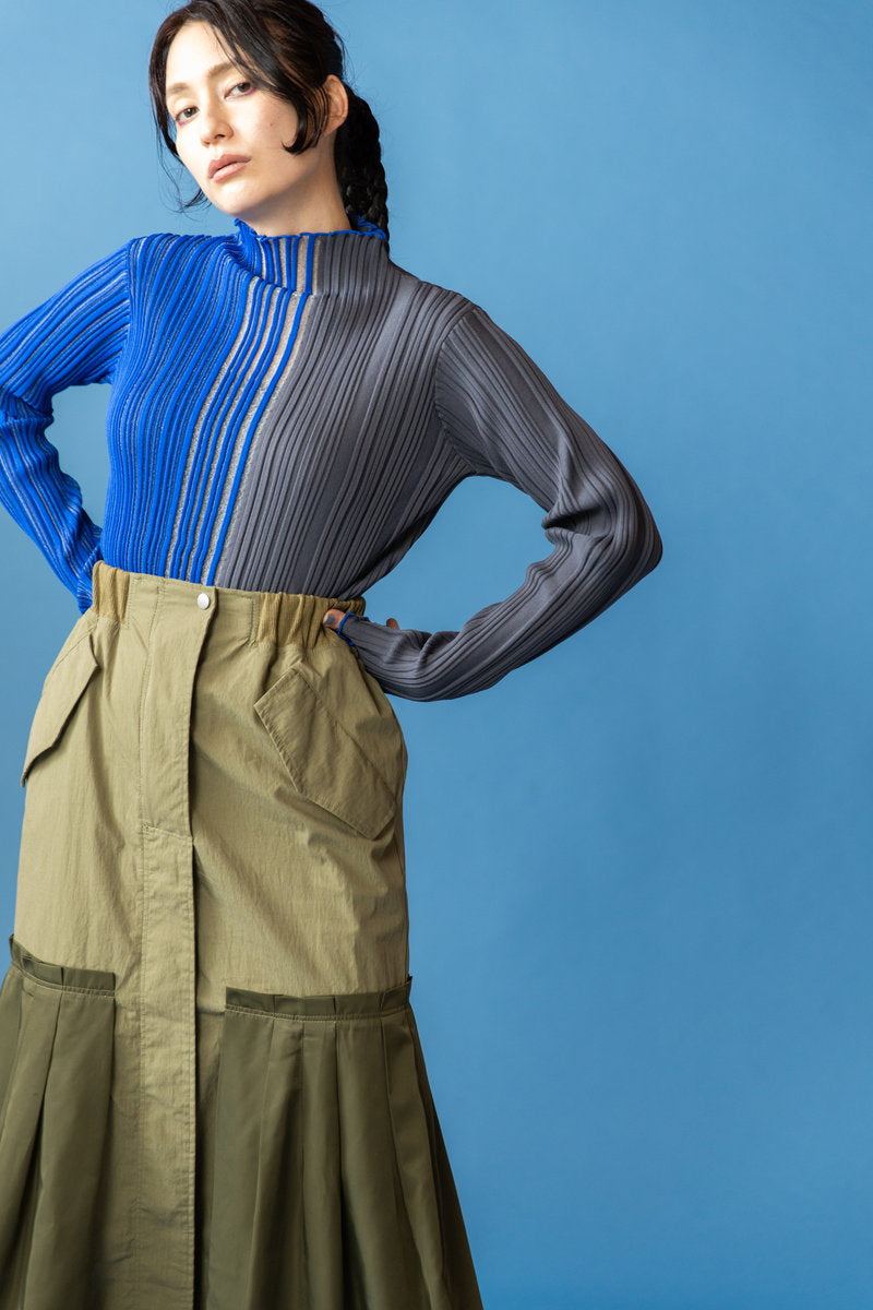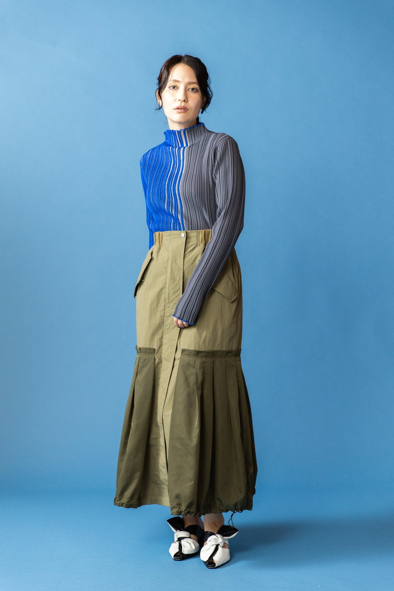 TOP > OSMOSIS STYLE OSMOSIS-STYLE-2026ss-JAN-vol1-07 2025-12-10 ラギッドなワークムードに女性らしいマーメイドシルエットを融合。さりげない透け感がアクセントとなるニットが、リーンなスタイリングへと導く。 着用アイテム