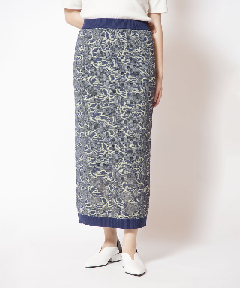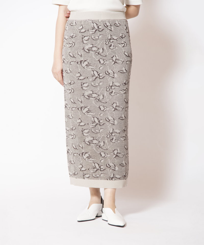 甘さを払拭する抽象的なジャガード柄がモードな雰囲気。
