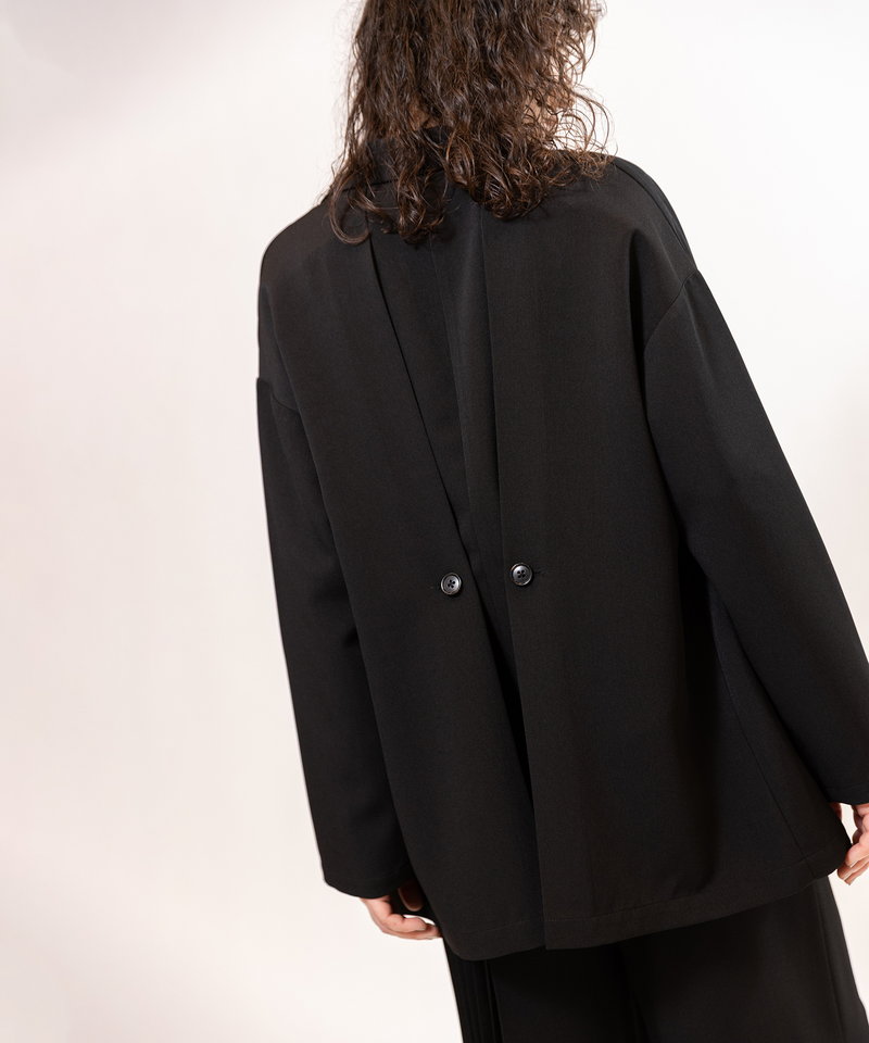 【セットアップ対応】メンズライクなテーラードジャケットは、バックボタンでほどよくシェイプ。