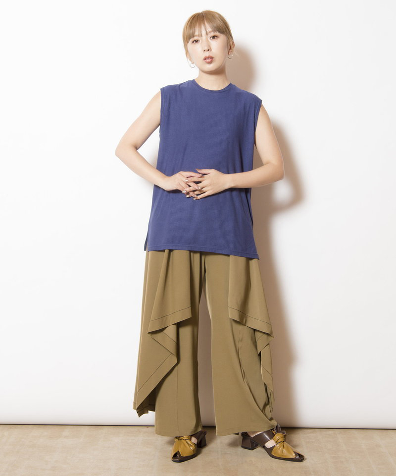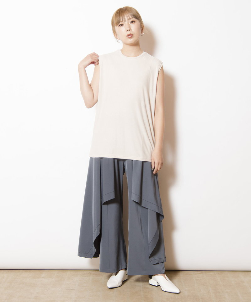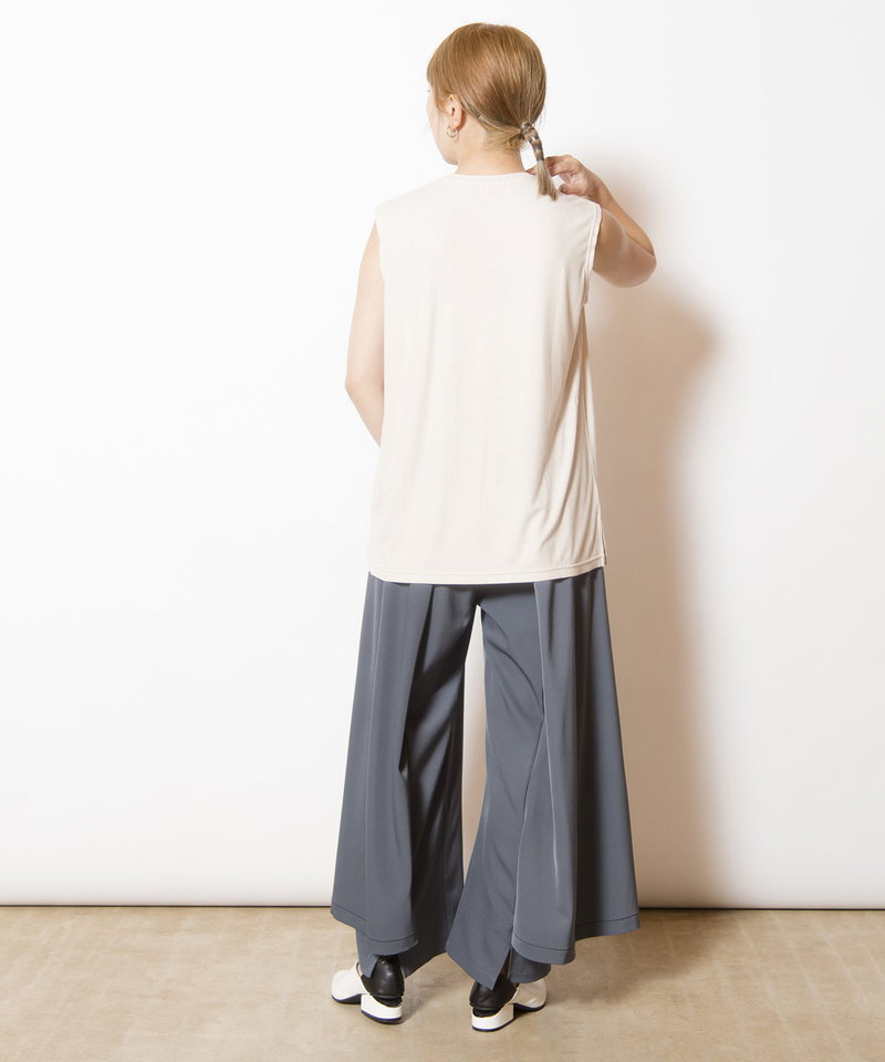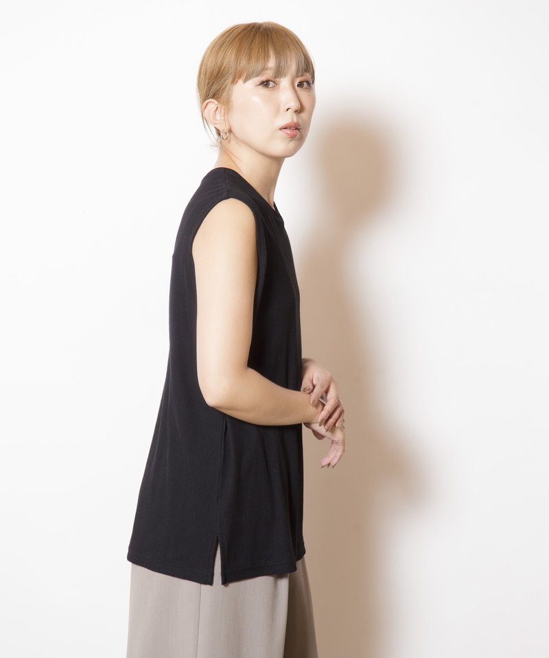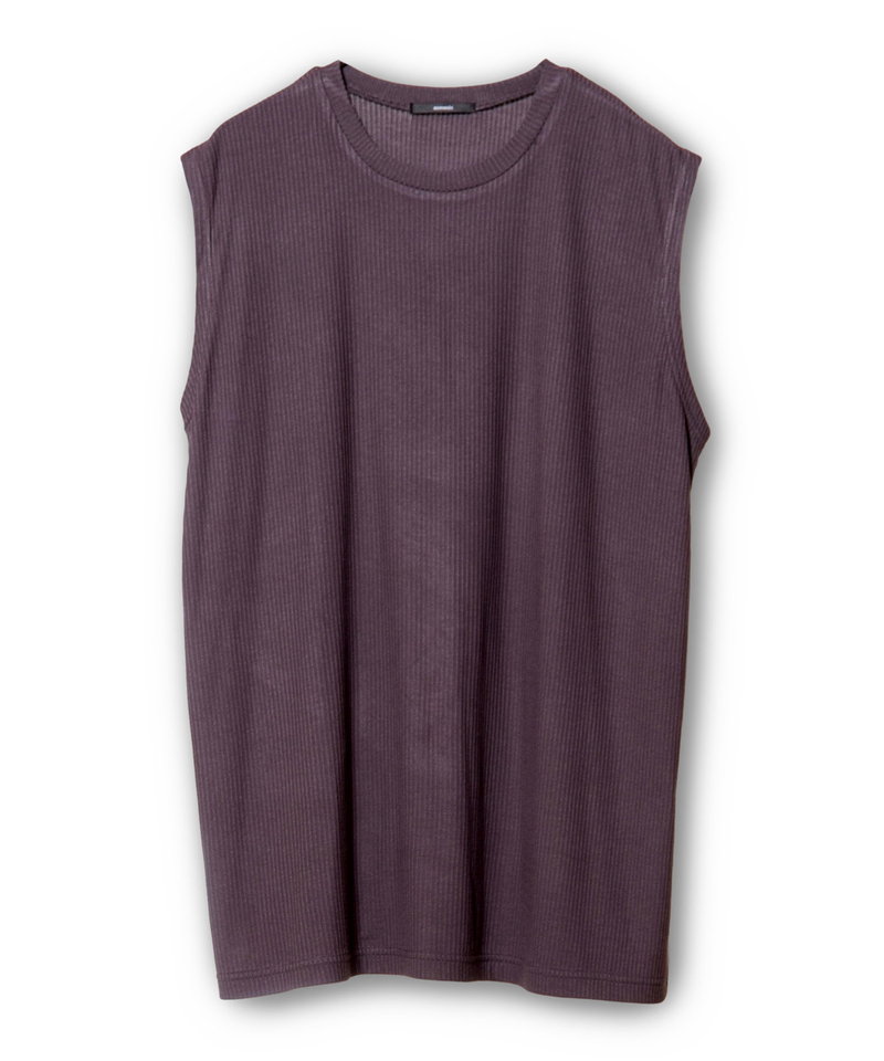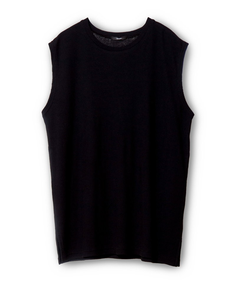 肌に溶け込むような柔らかなニュアンスで、ボックスフォルムを優しく整えたタンクトップ。