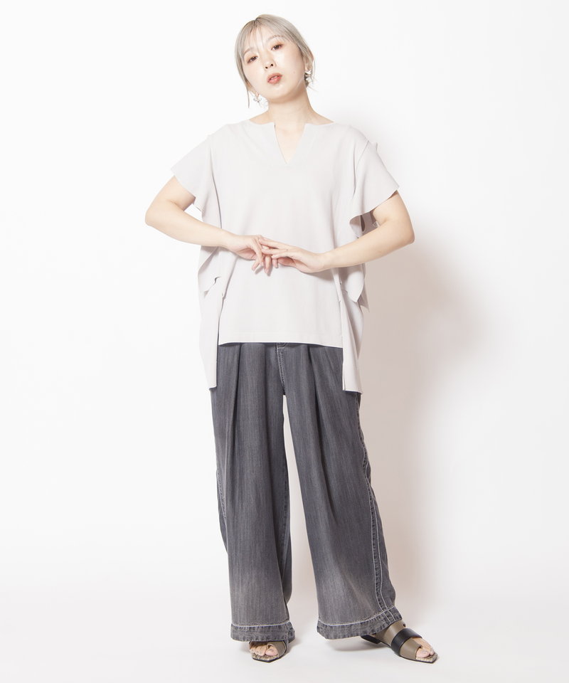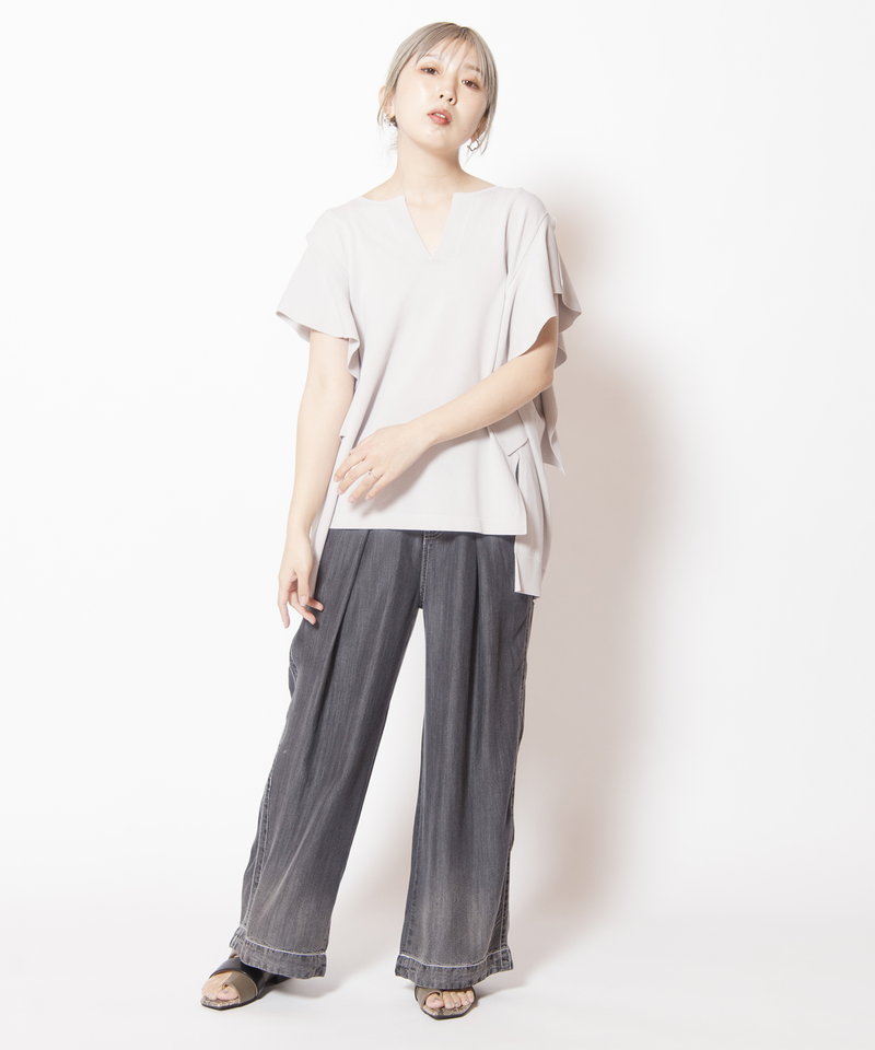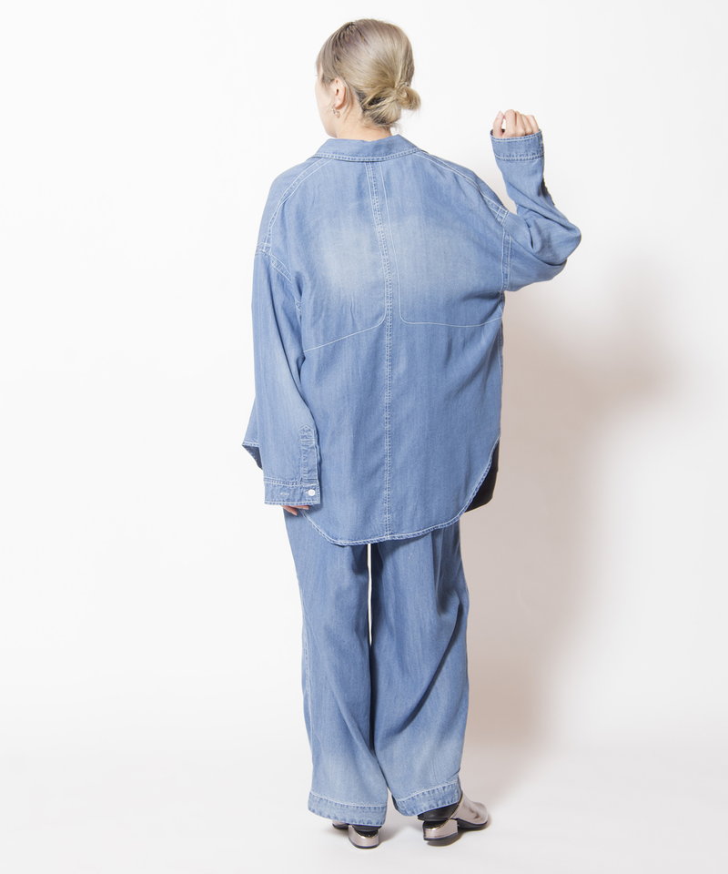 ストレスフリーなセルロースデニムは、柔らかな風合いの中にタックで立体感をプラス。