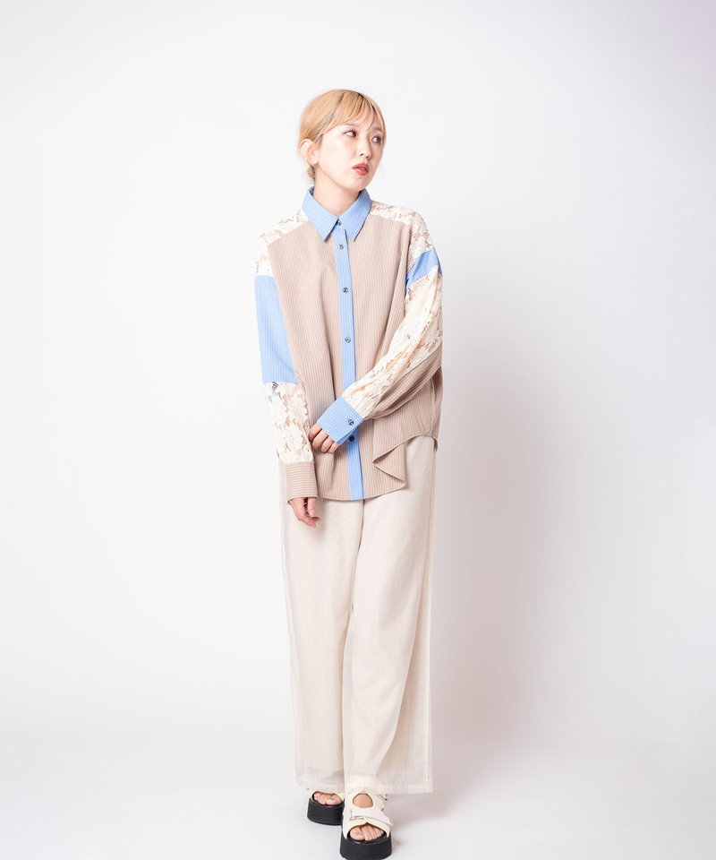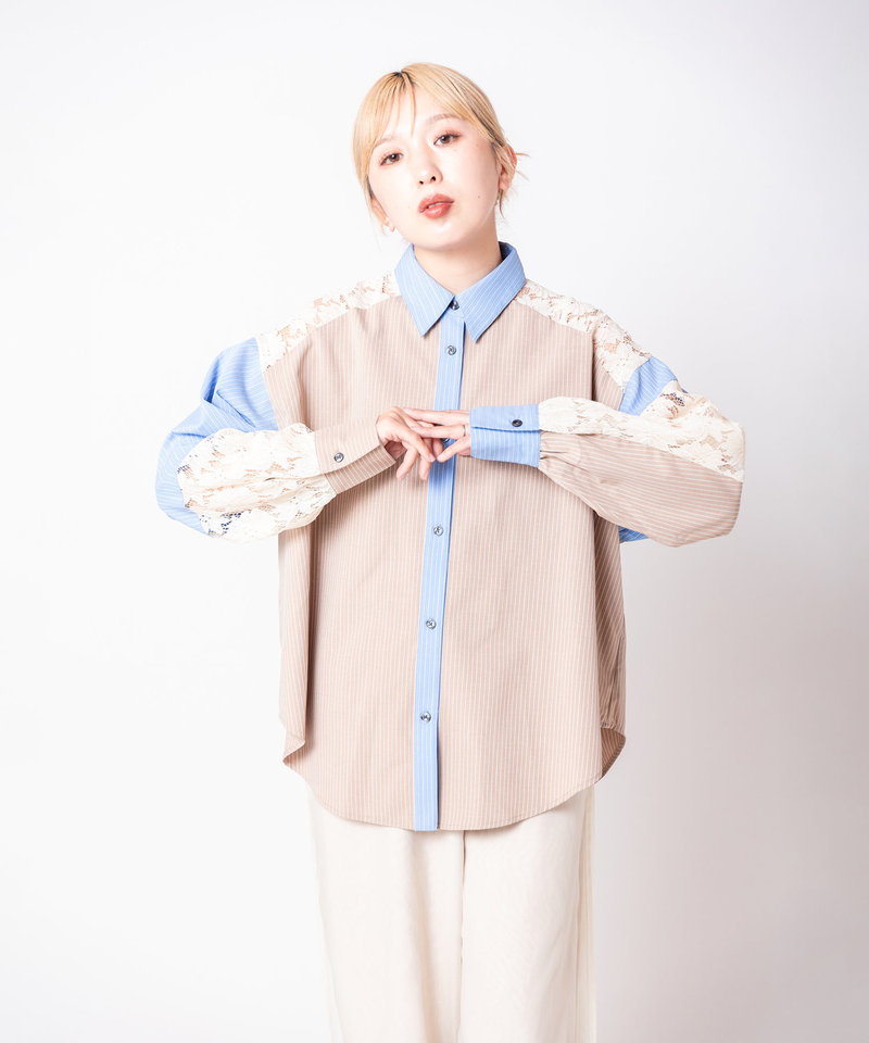 レース切替シャツブラウス(4月上旬入荷予定)