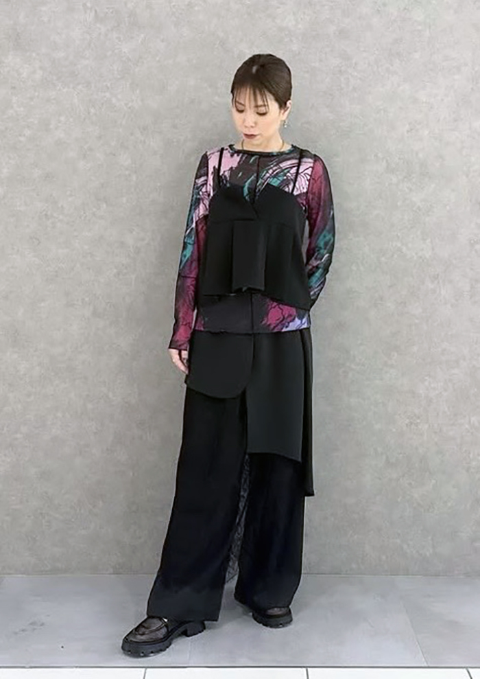 こなれたレイヤードスタイルを造るなら一枚は持っておきたい、シアートップス。