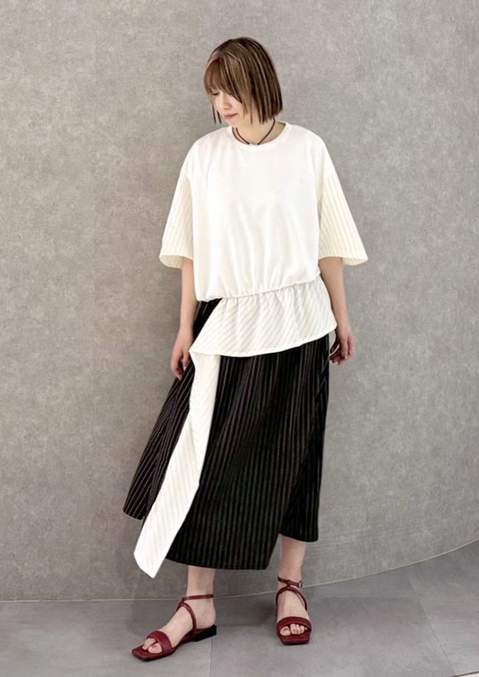 ウェアラブルなカットソーをベースに、ストライプ切替でモダンな味付け。