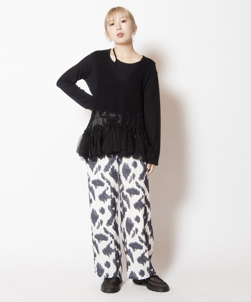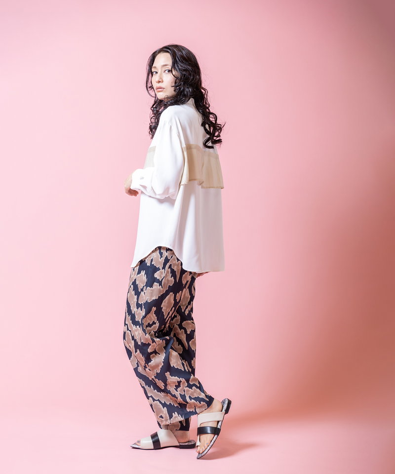こなれ感あるスタイルを叶える、ノスタルジックなニュアンスプリントが映えるパンツ。