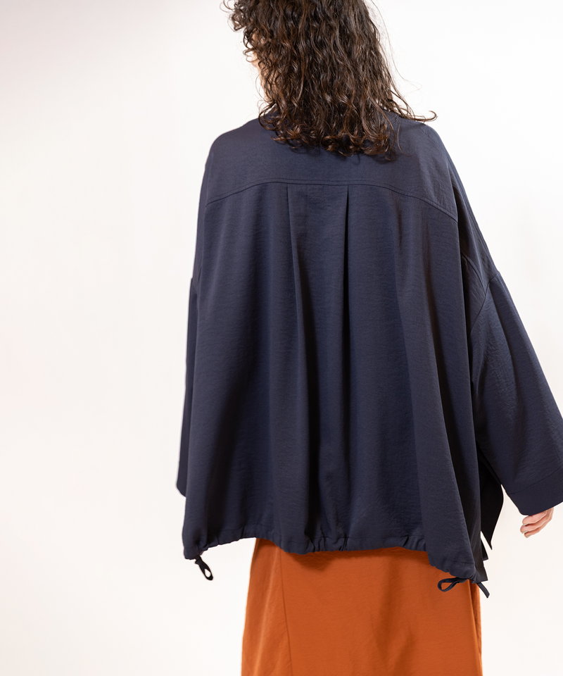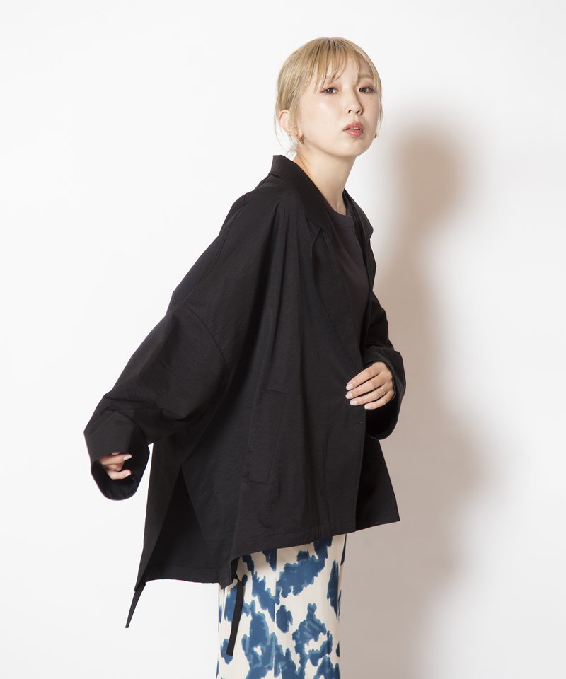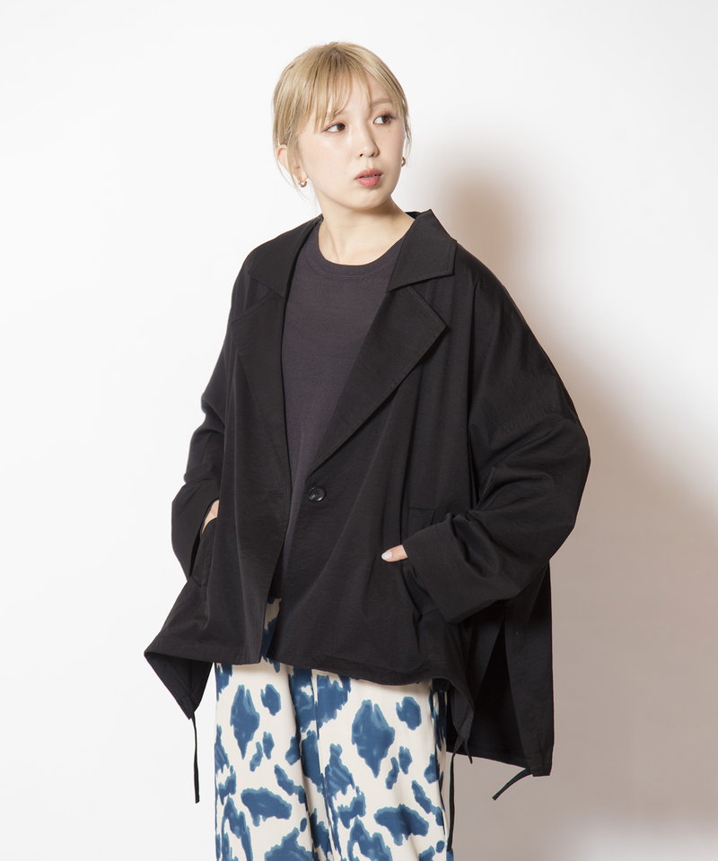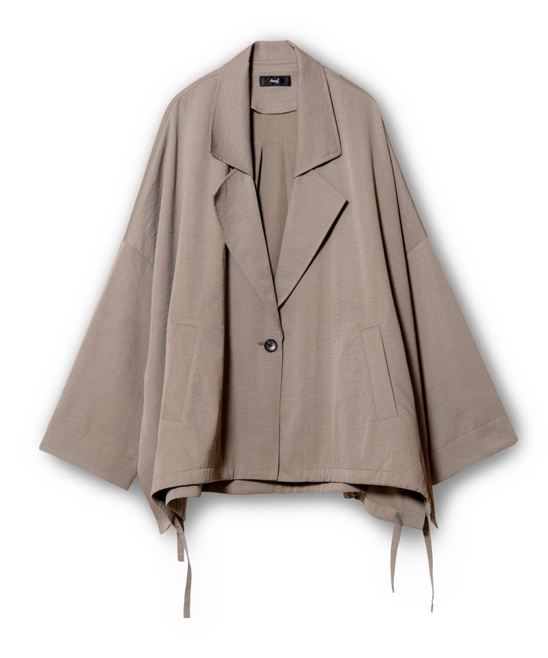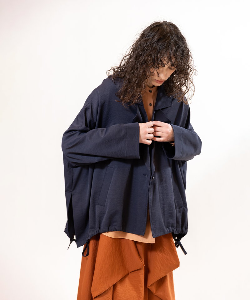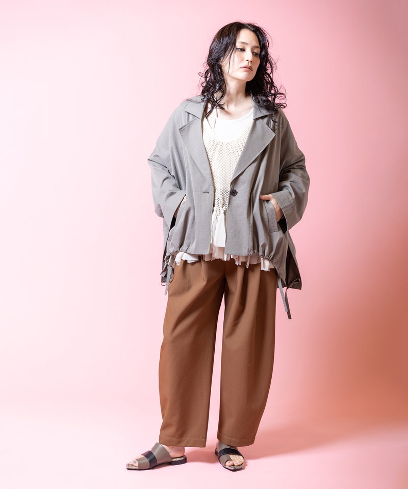 そのまま羽織ればハンサムに、ドローストリングを絞れば柔らかなフォルムへと表情チェンジ。