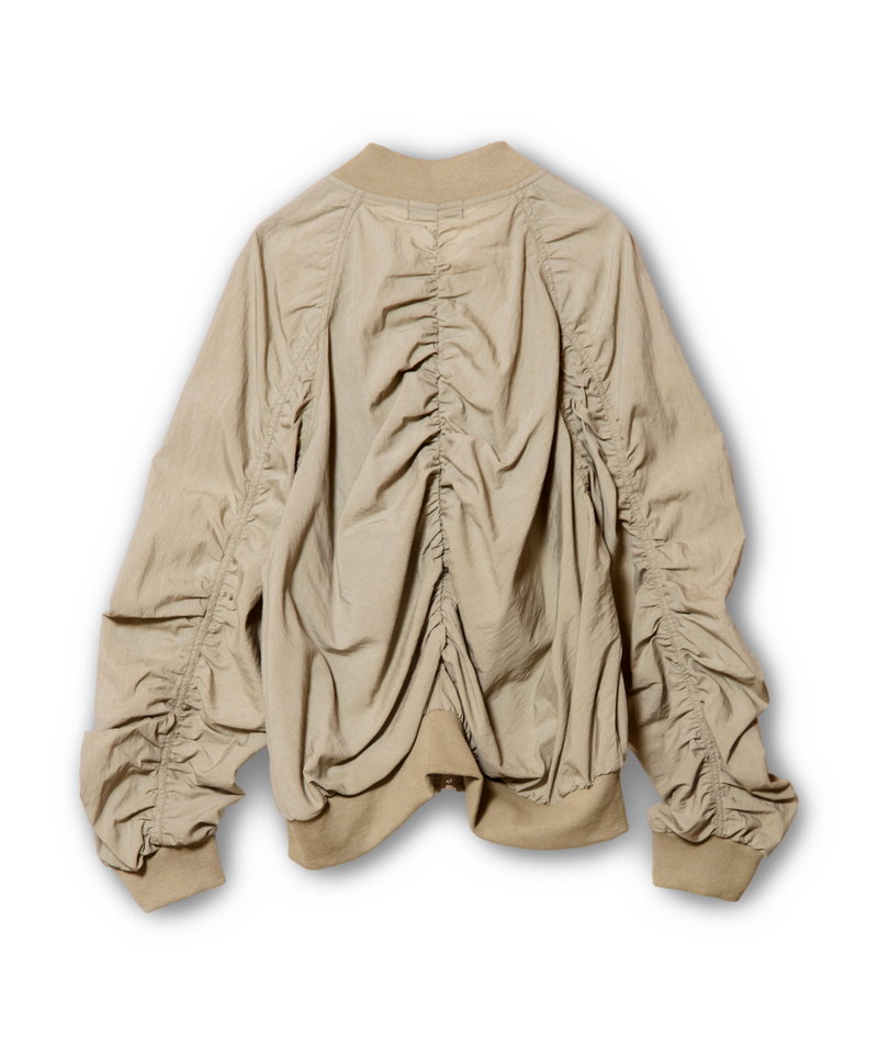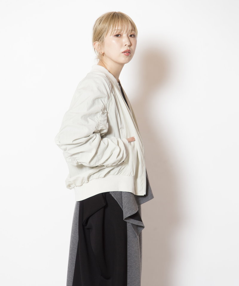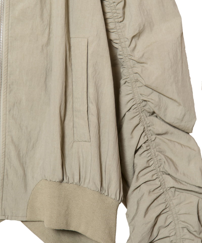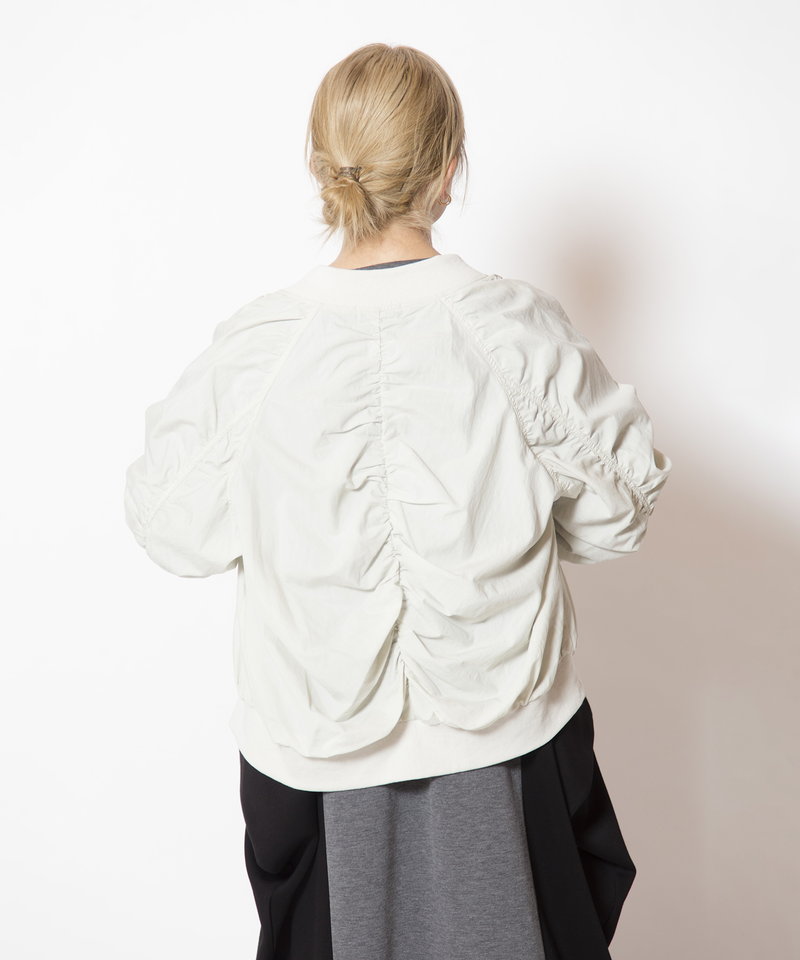 たっぷりのギャザーを施したブルゾンは、ワークムードの中にも仄かな甘さを忍ばせて。