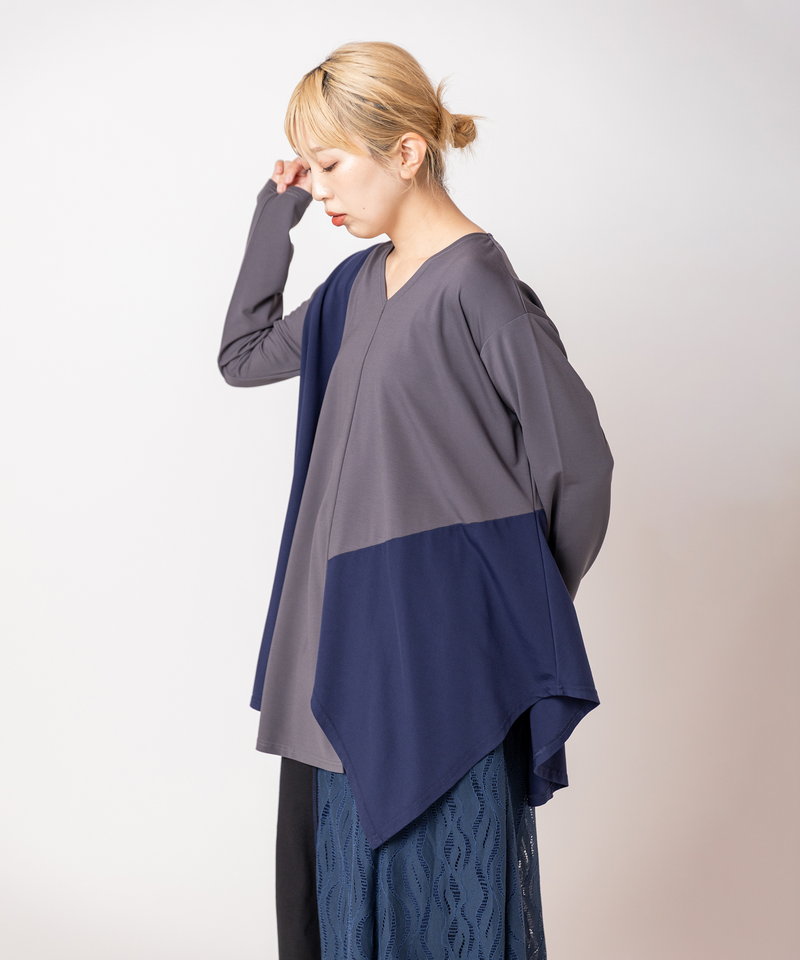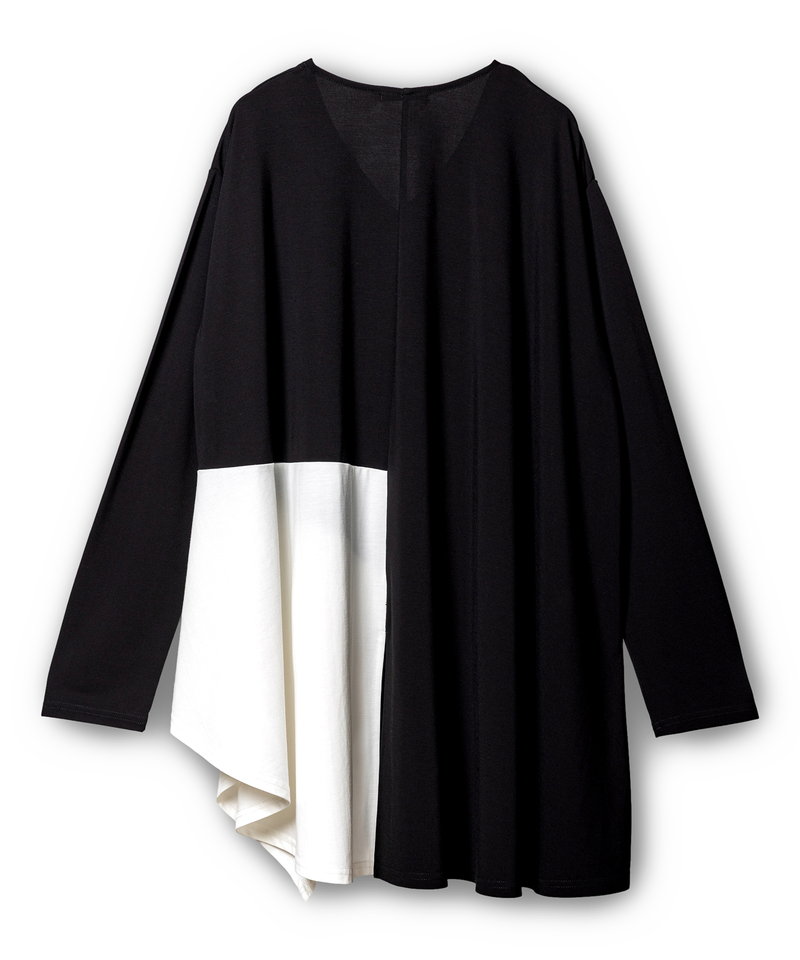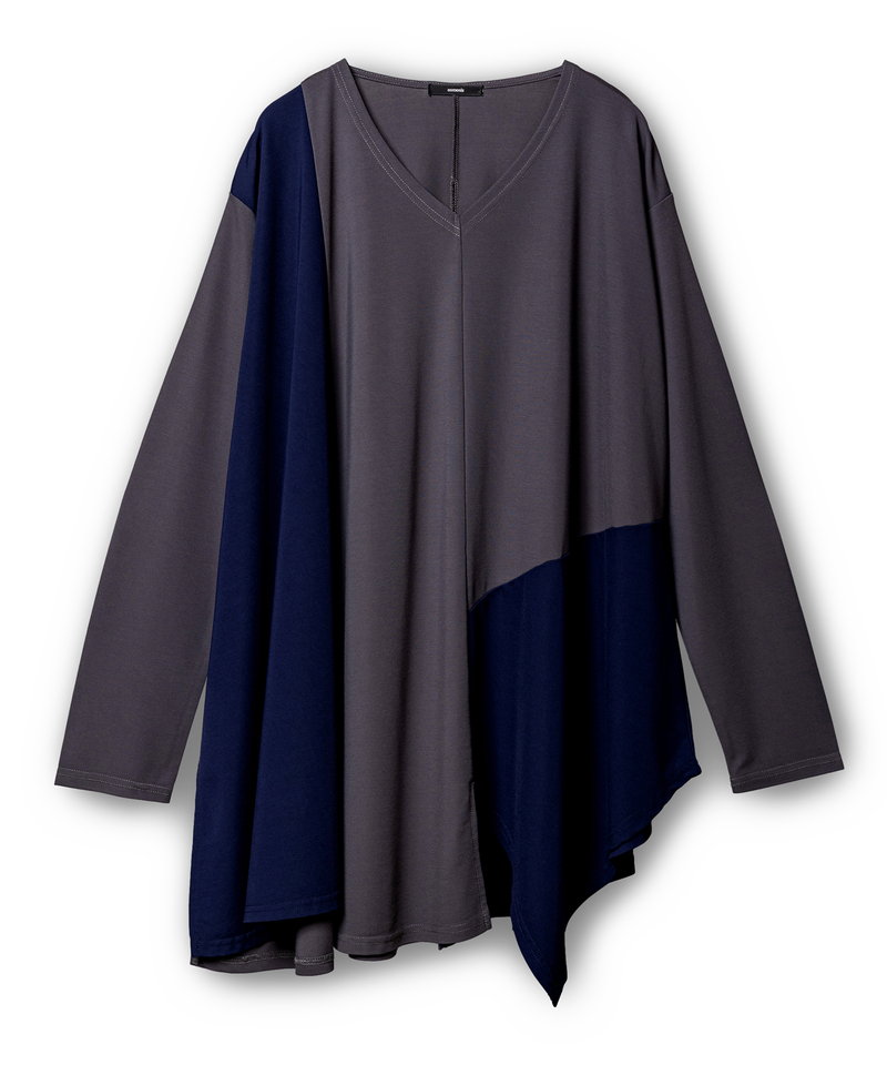 イージーな着心地ながら、すっきりと見せる切替と、程よく広がるフレアーラインが女性らしさを引き立てる。
