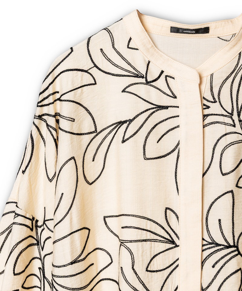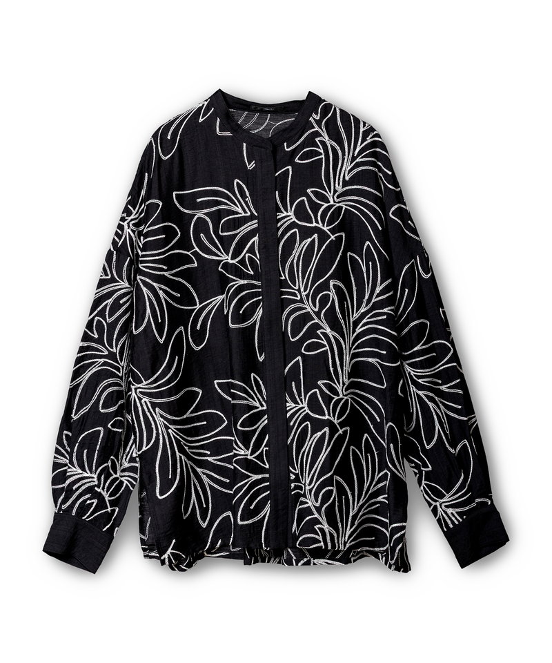 春を呼び込むボタニカルな刺繍ディテールが、スタイリングを華やかに。