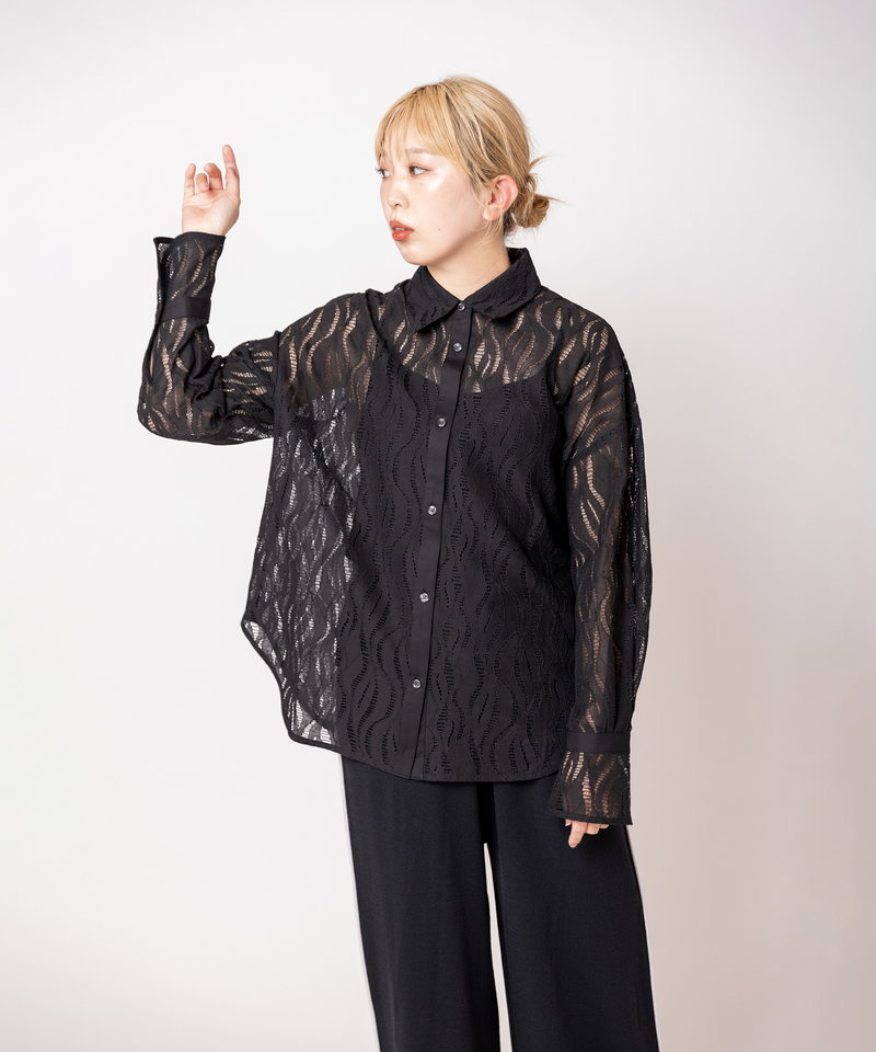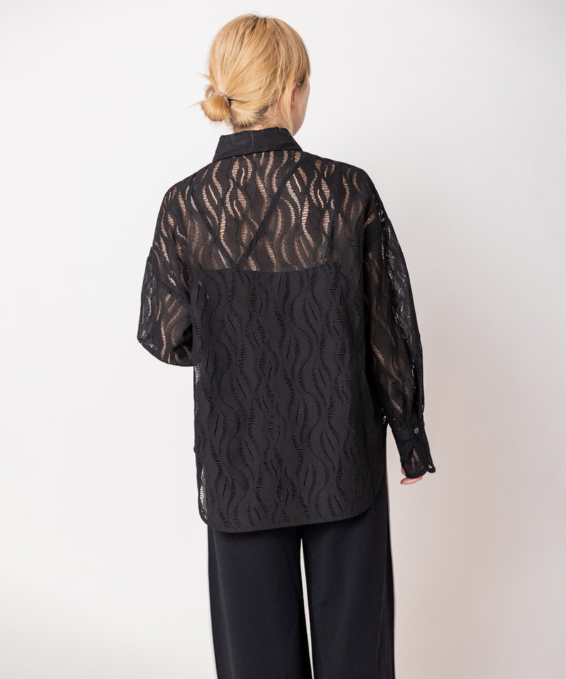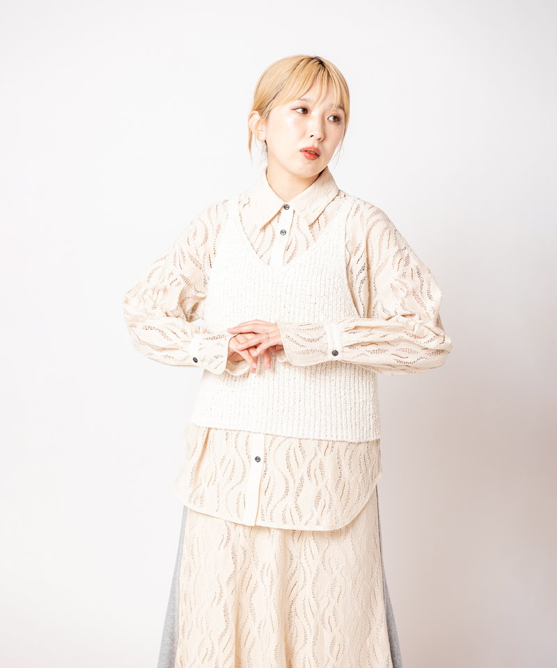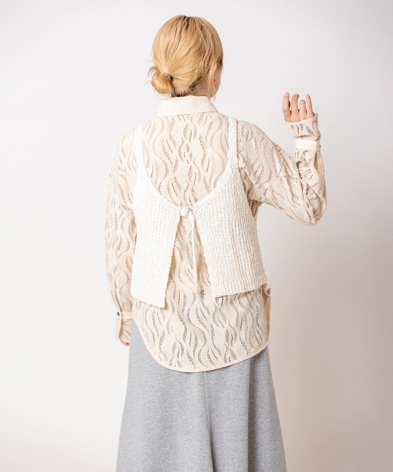 抽象的なラインを描くレースで甘さを抑え、モードな印象に。