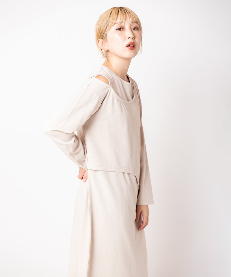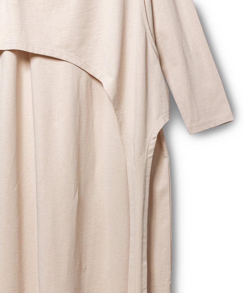 レイヤードライクなデザインを、カジュアル素材で日常にフィット。