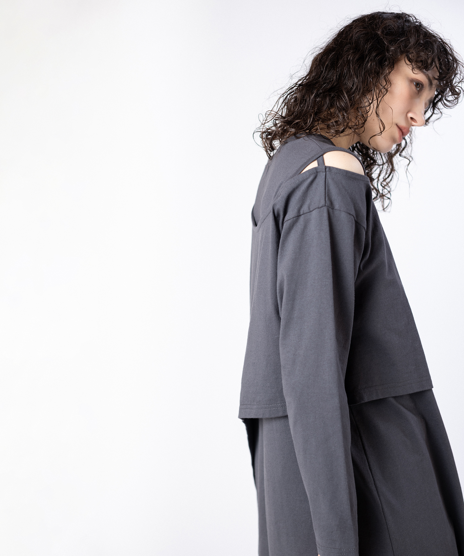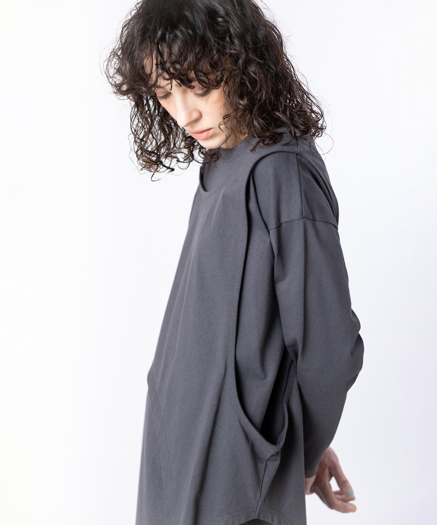 レイヤードライクなデザインを、カジュアル素材で日常にフィット。