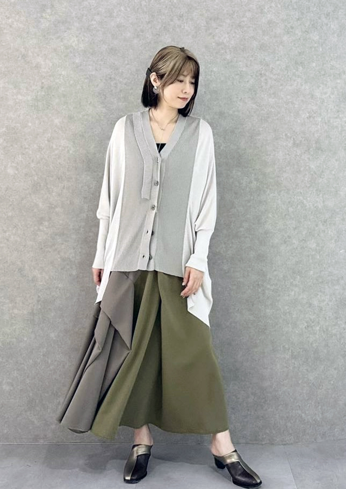大振りのタックで独創的なシルエットを生み、ボリュームのあるフレアーがエレガント。