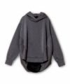 立体感のあるフードにコクーンシルエット、バックのドレープもモードを貫いたフーディ。