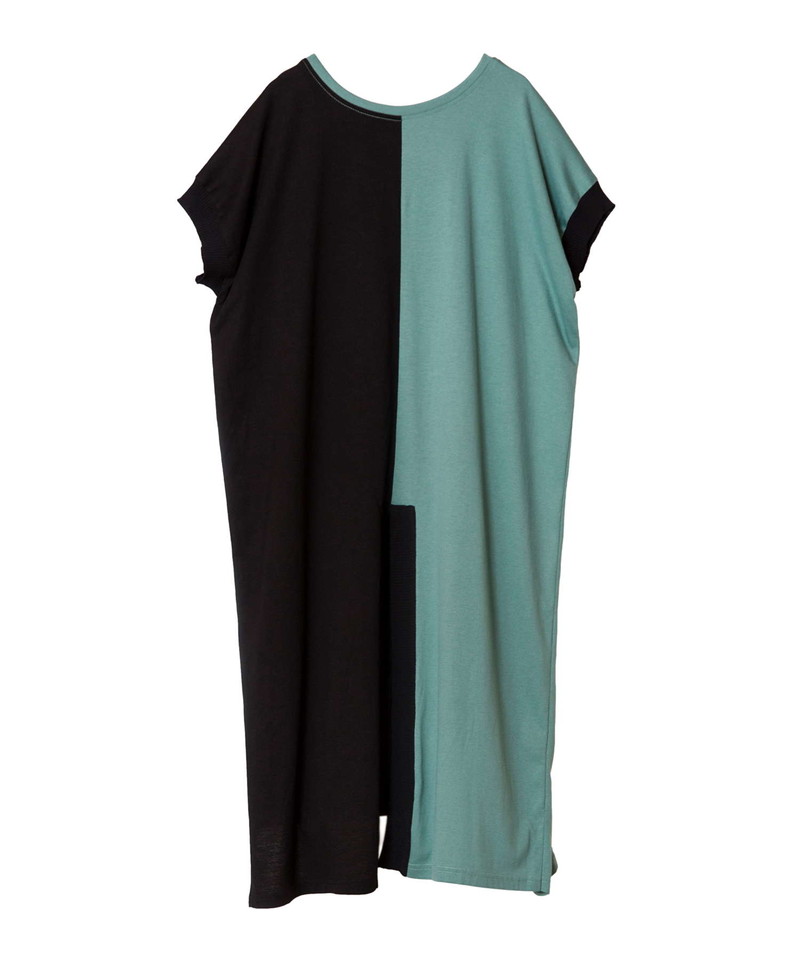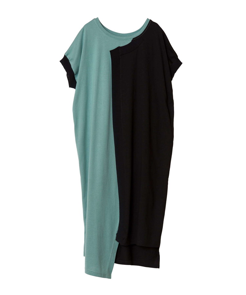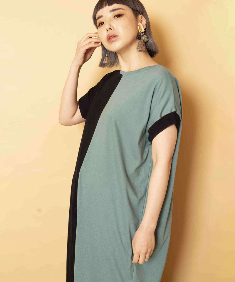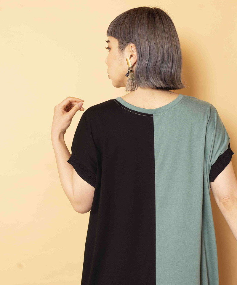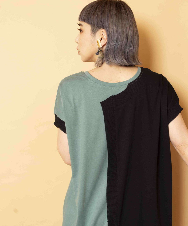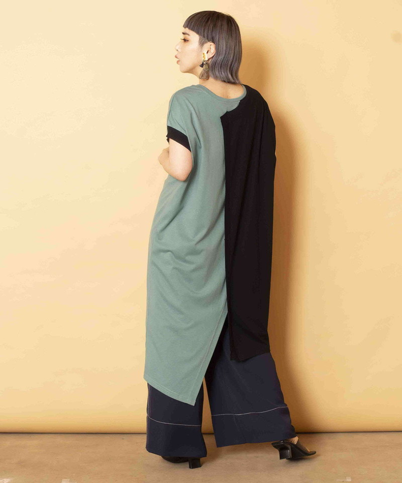 細長シルエットを強調し、異素材コンビのRIBがアクセントになったロングプルオーバー。