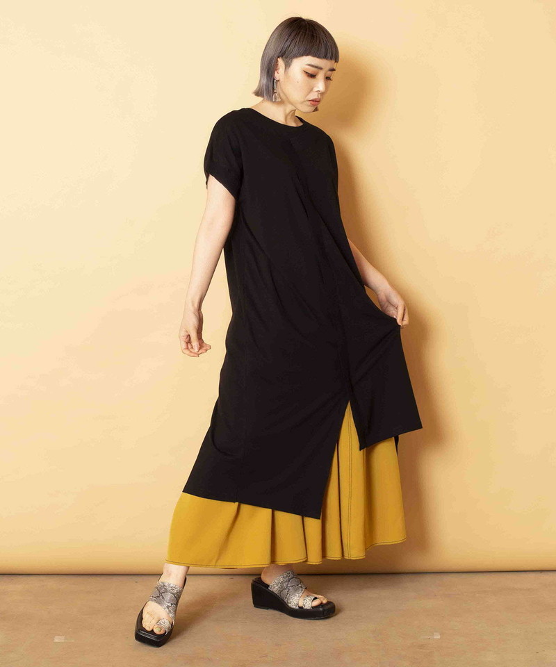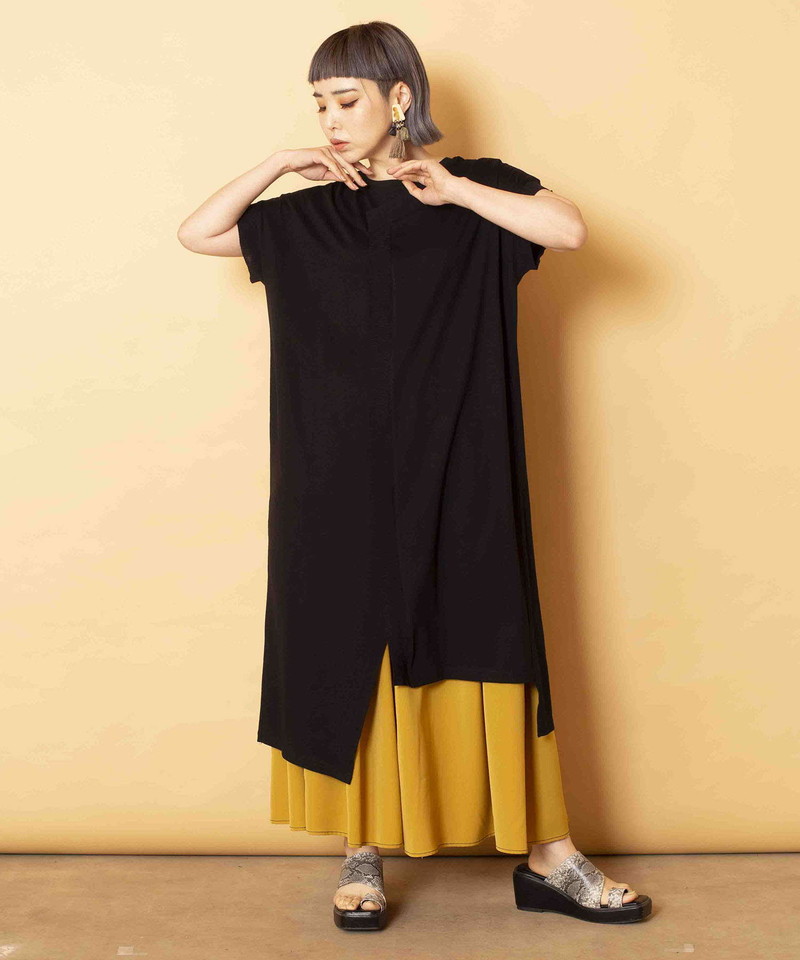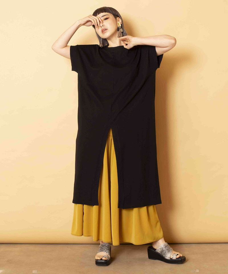 深いスリットでボトムシルエットを選ぶことなく、コーディネート出来る万能トップス。