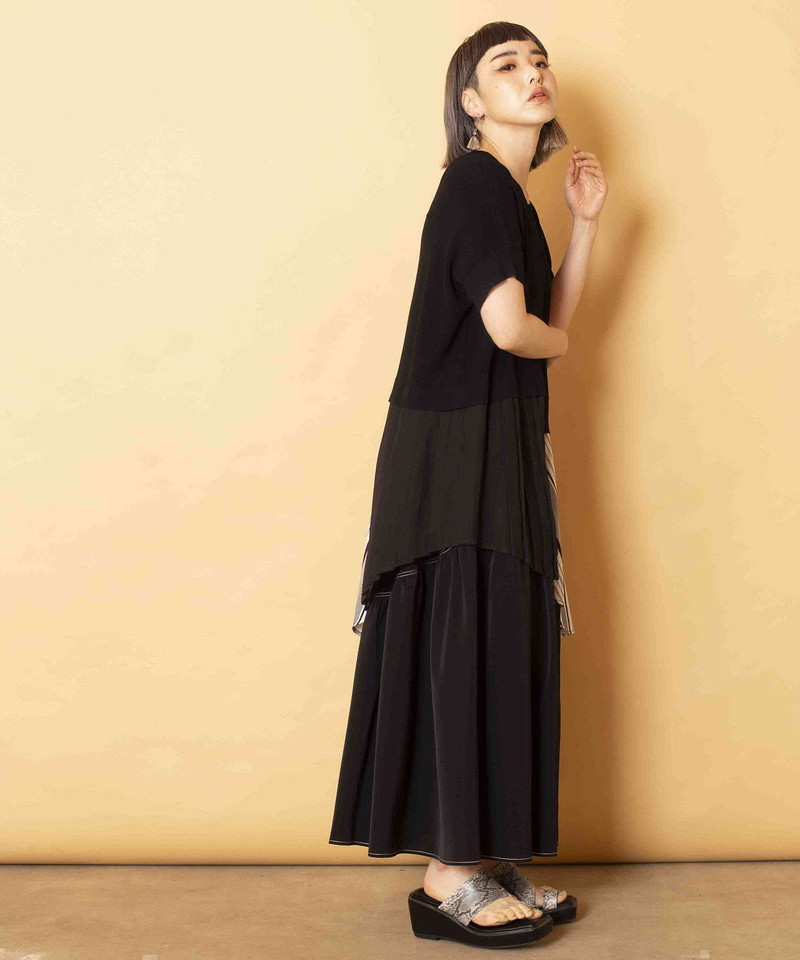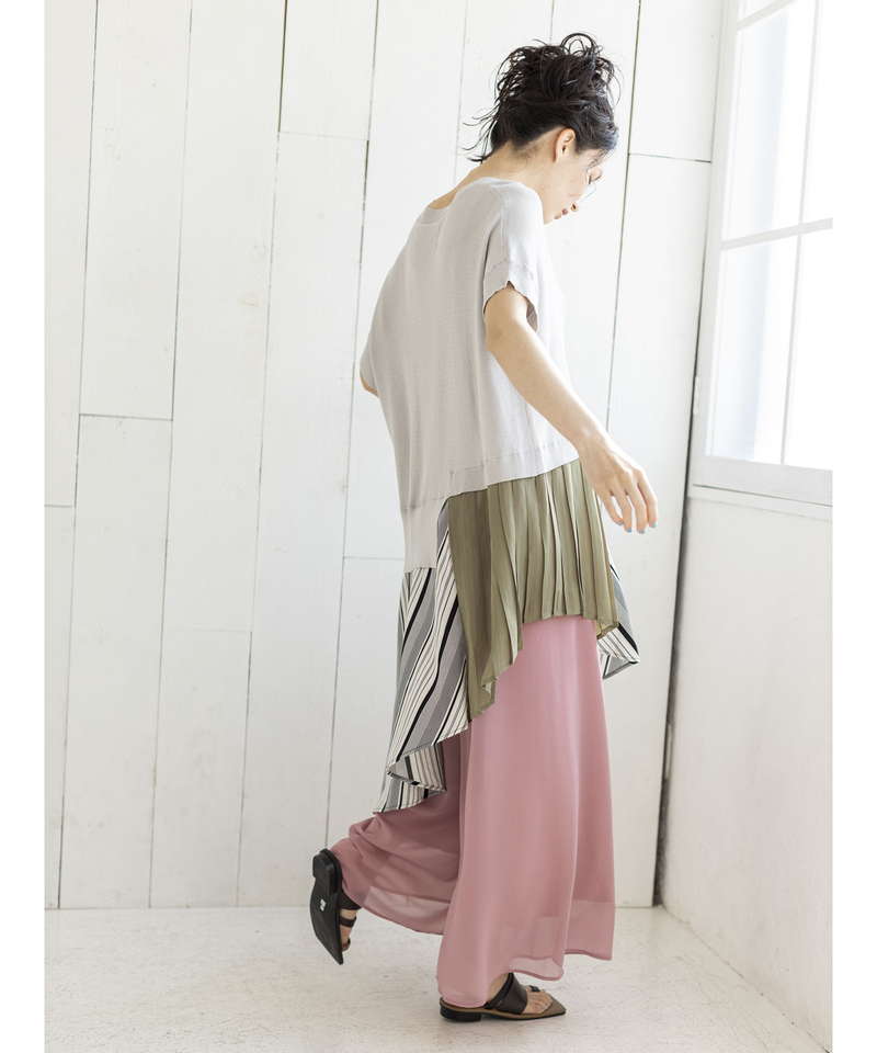 イラギュラーヘムの切替はプリーツ加工で、軽さを演出。