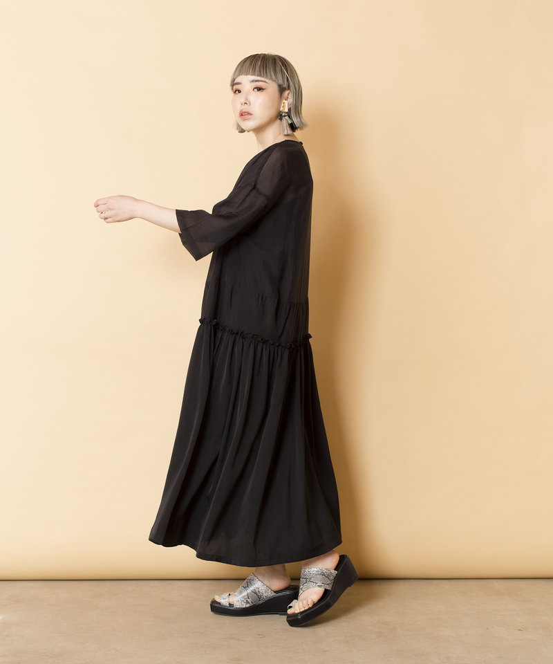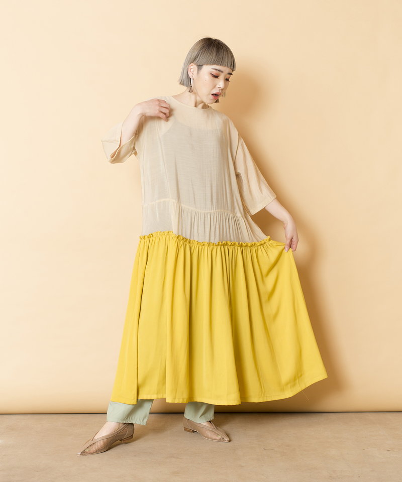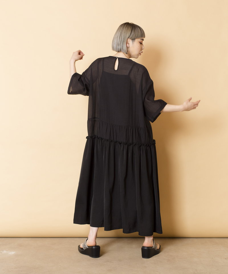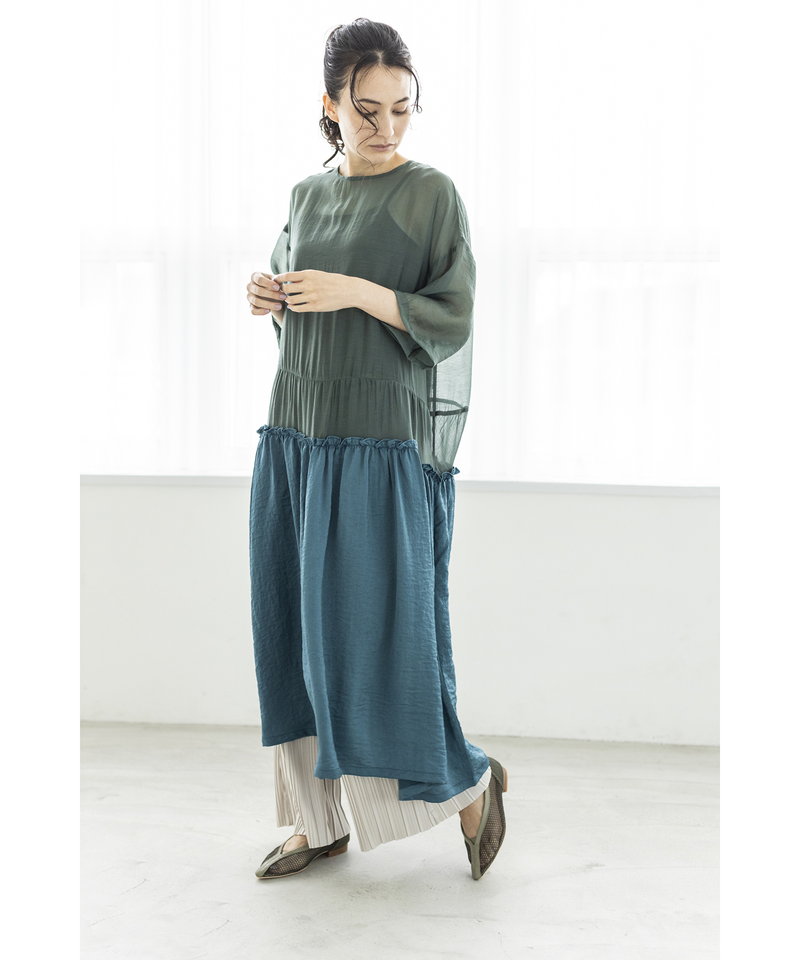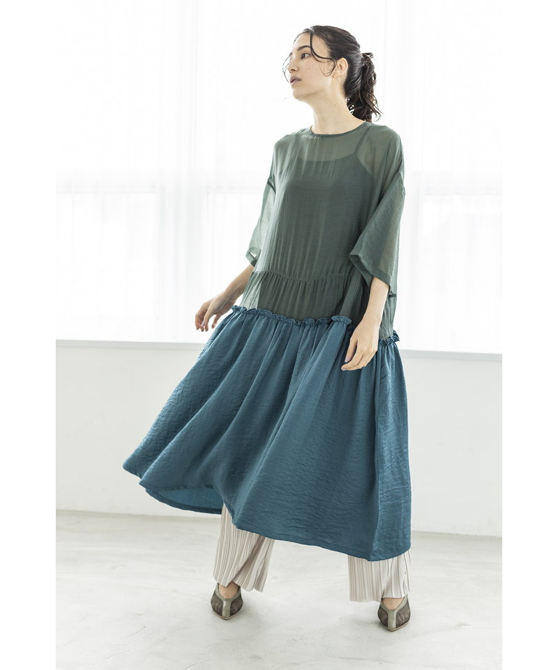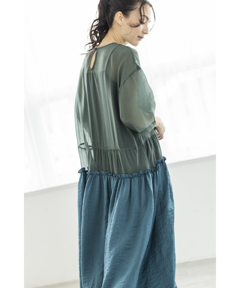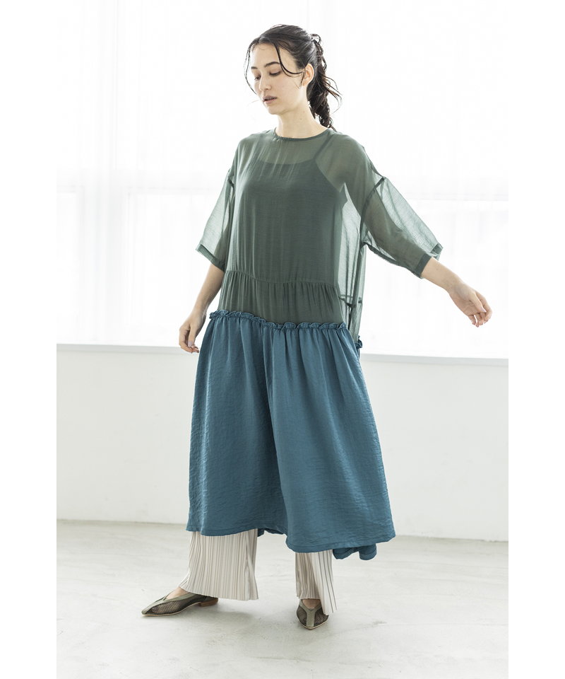 春夏らしく涼やかなシアー素材で仕立てたワンピース。