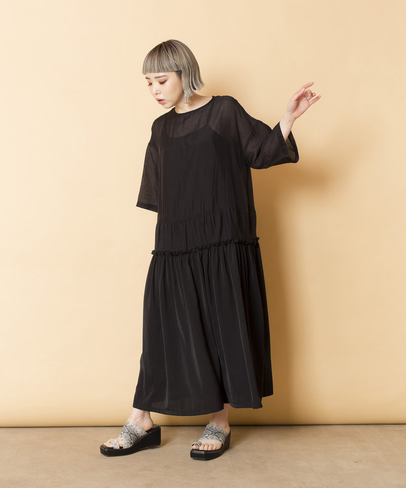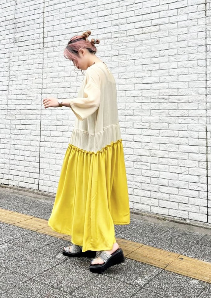 キャミワンピのペチコートと合わせれば、レイヤードワンピーススタイルに。