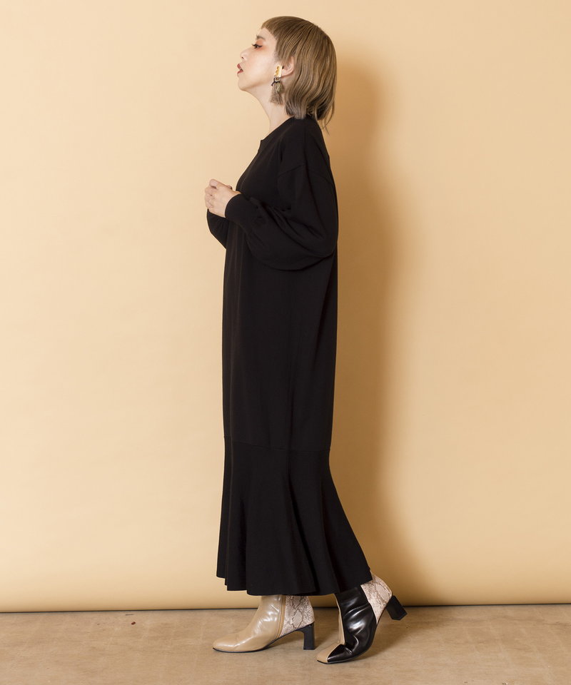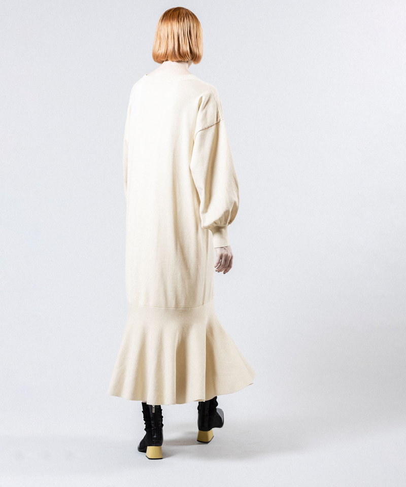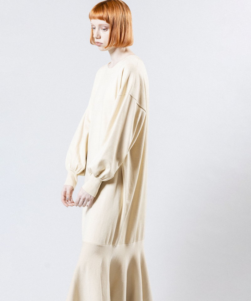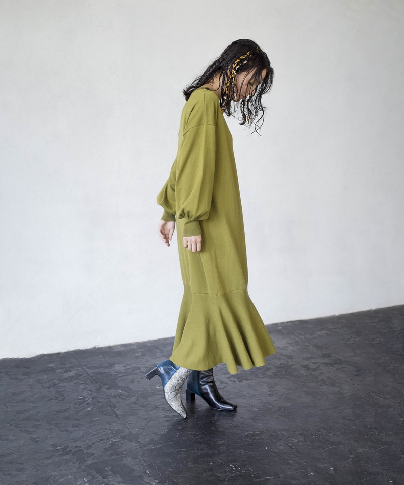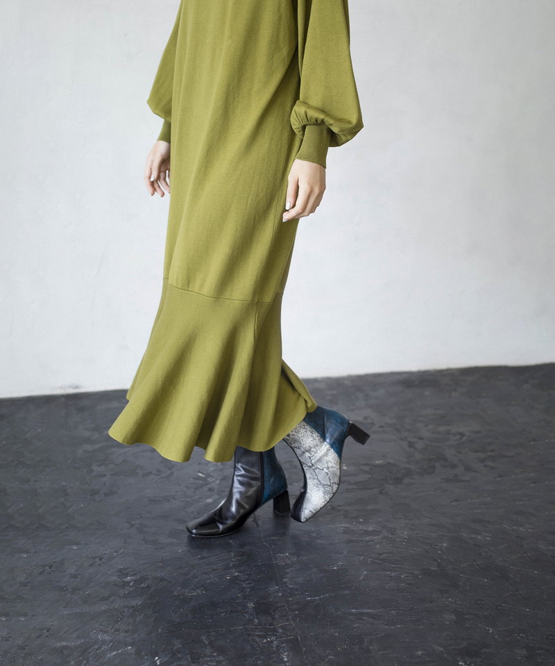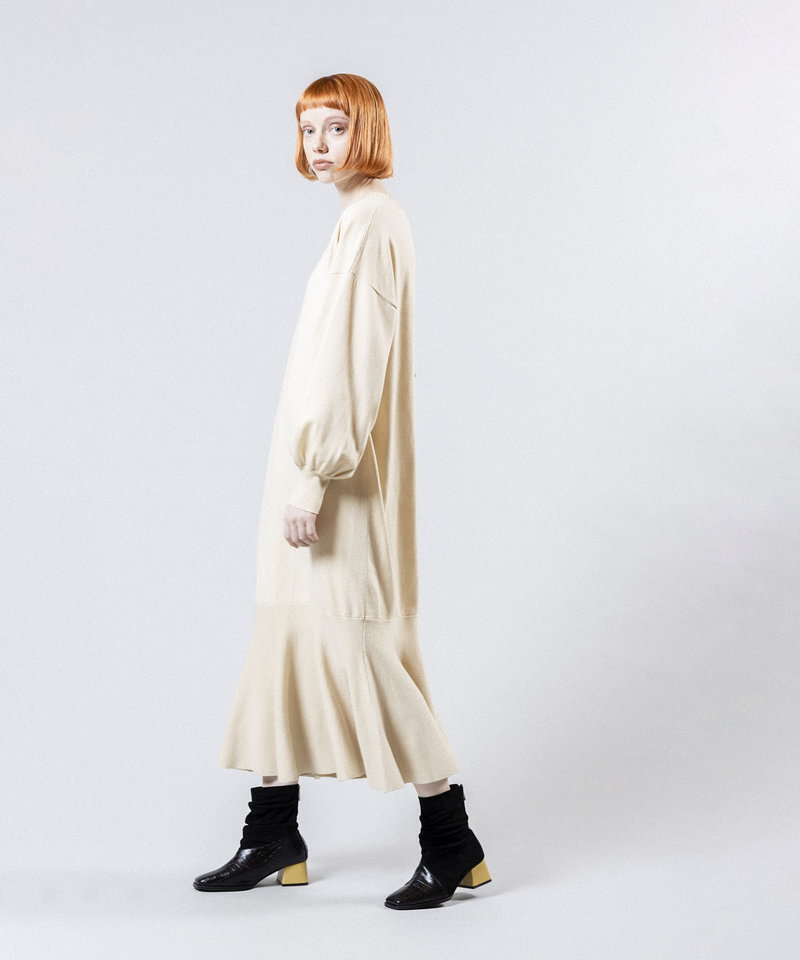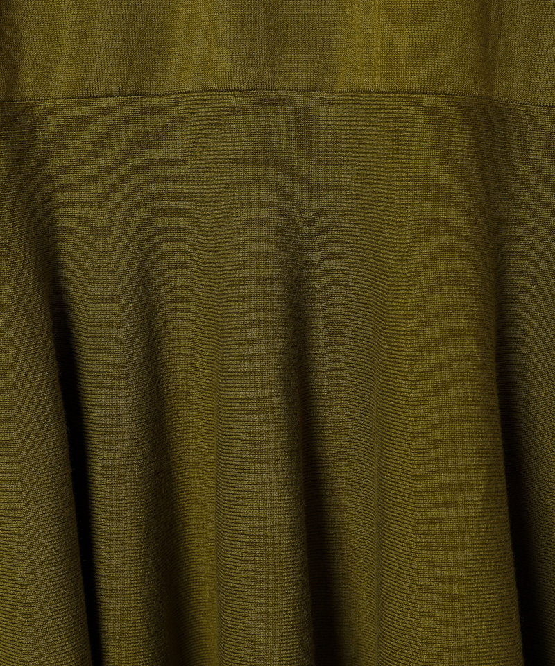 裾に切り替えを入れたフレアのラインが女性らしく、動くたびに揺れるエレガントなフォルムが上品な印象を演出。