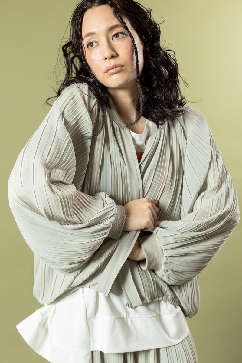An impressive setup with an airy silhouette created by pleats,