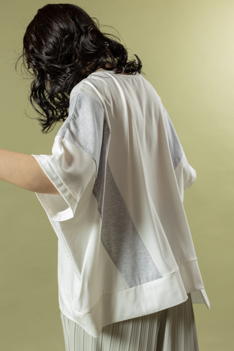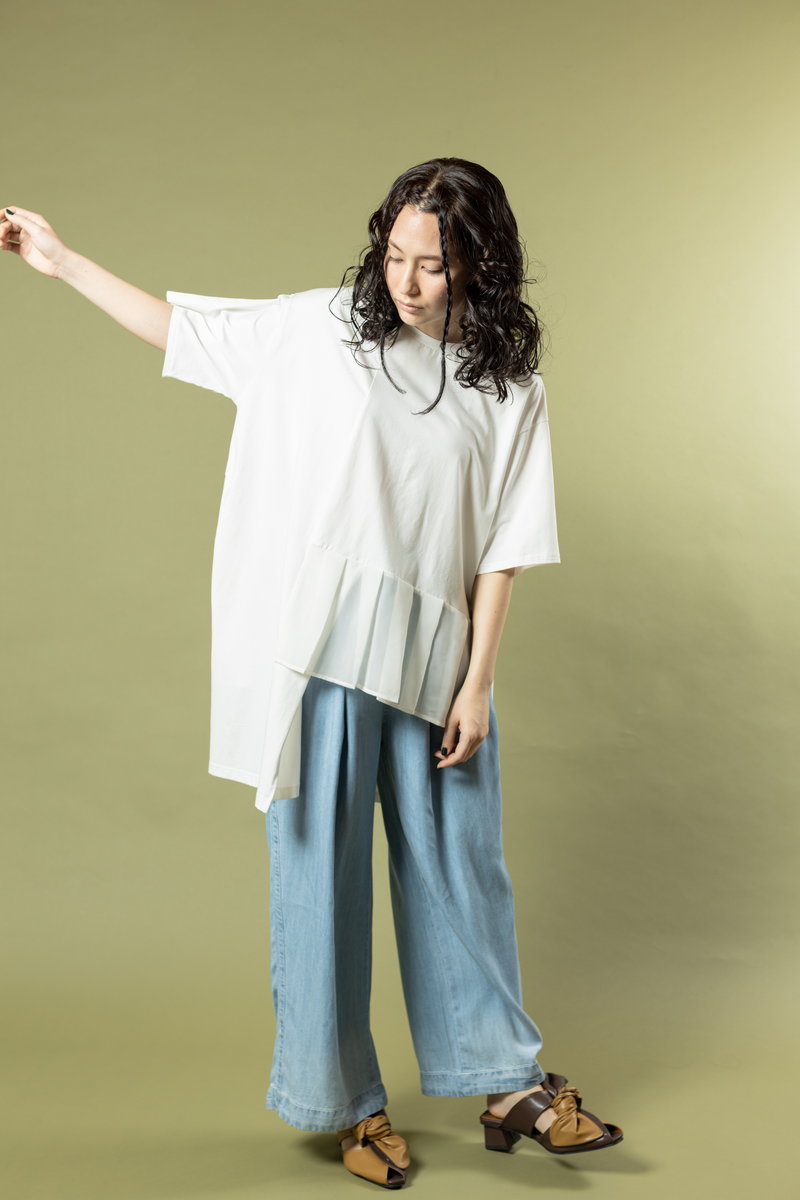 is updated in OSMOSIS style with a bold asymmetric T-shirt.