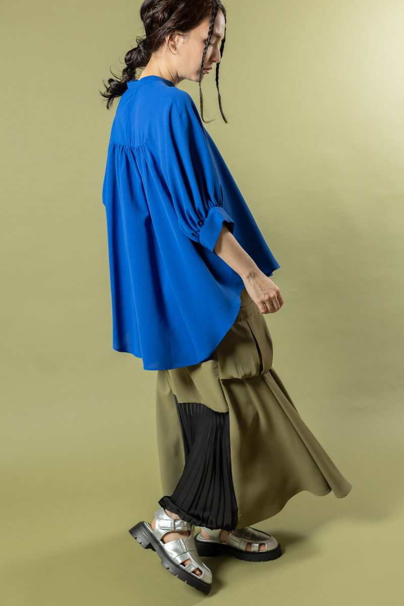 This blouse, with its subtle femininity from the gathers,