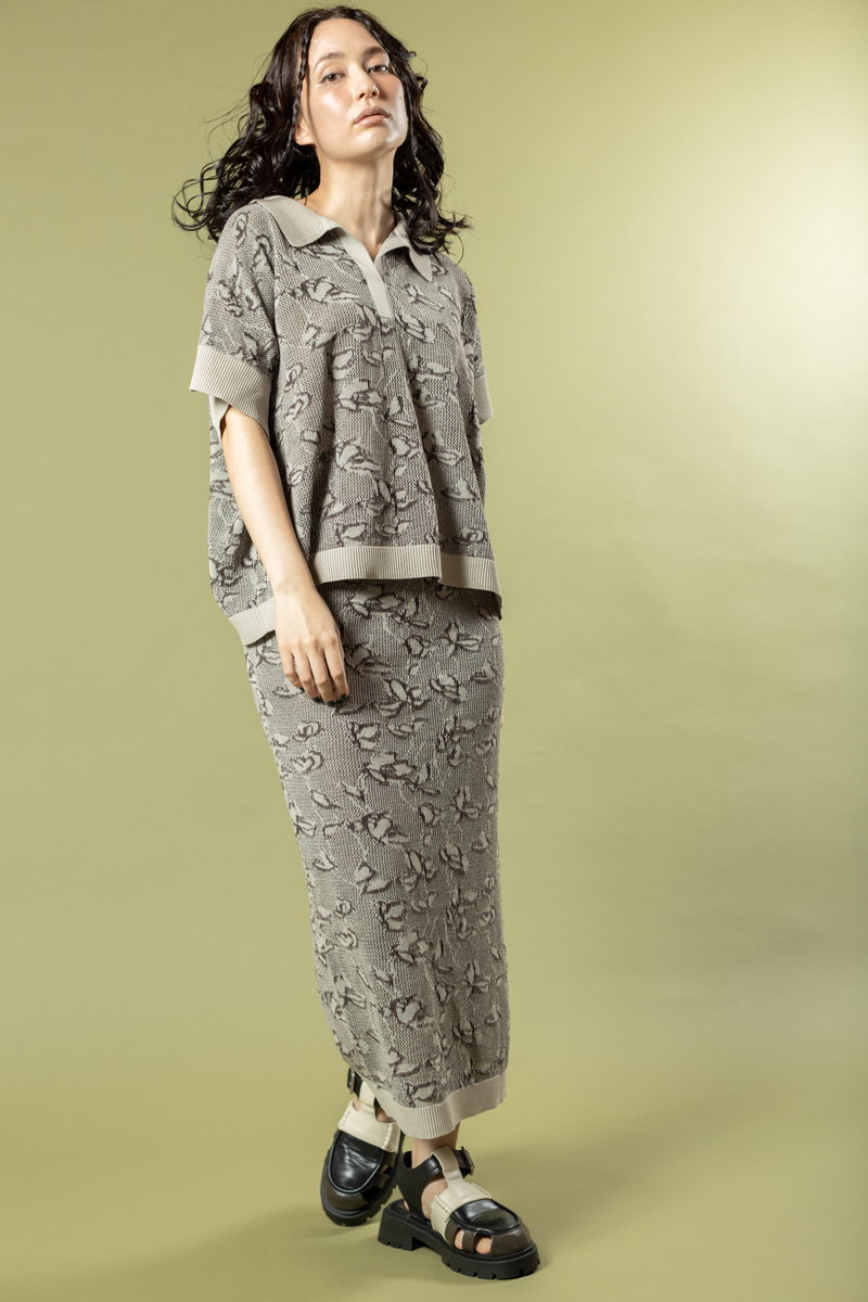 The slim skirt is balanced with