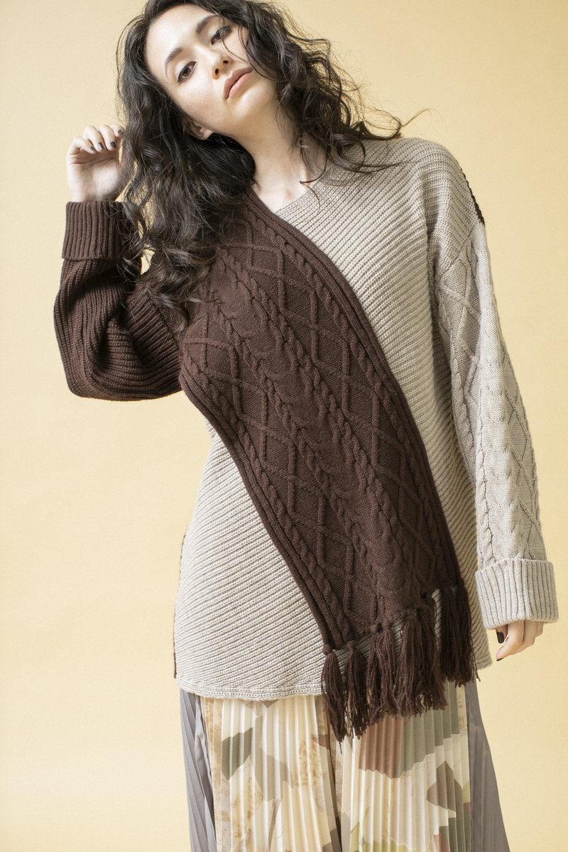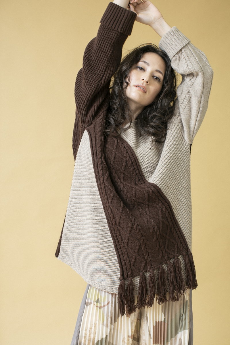 配色ケーブルニットプルオーバー ¥8,690