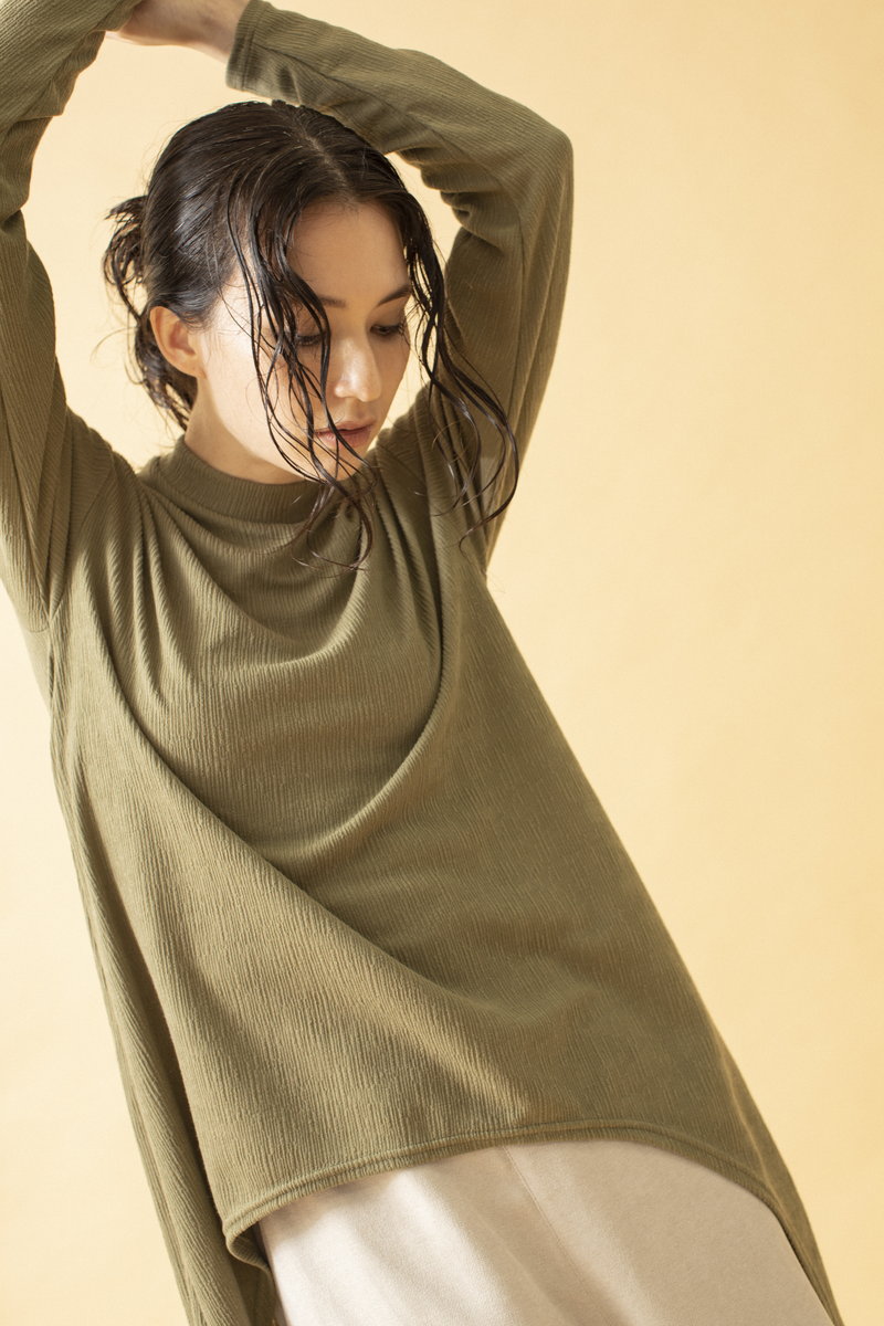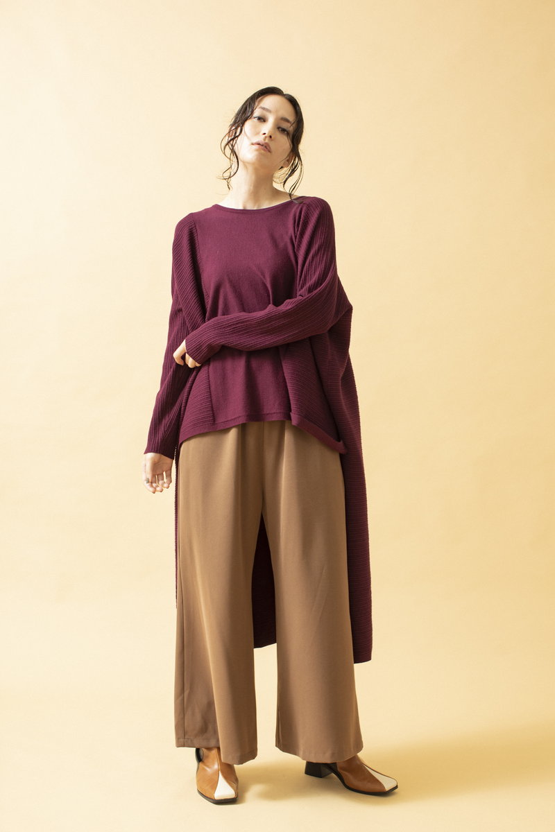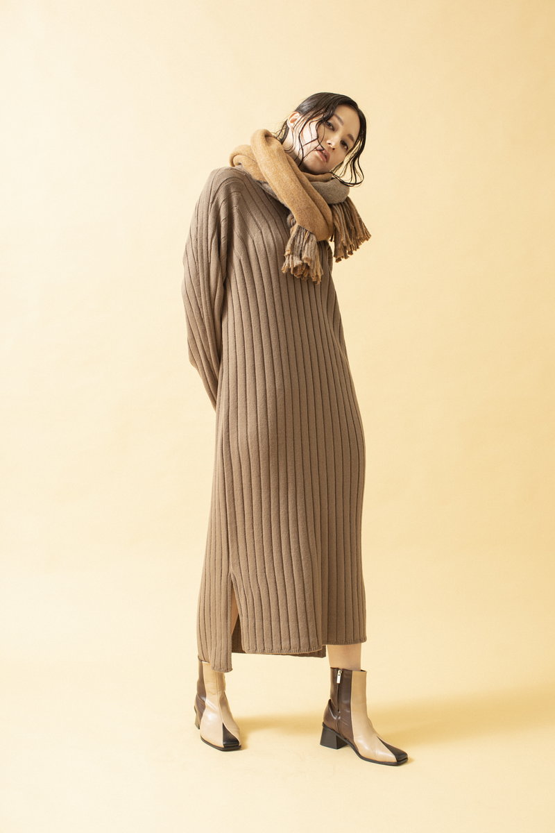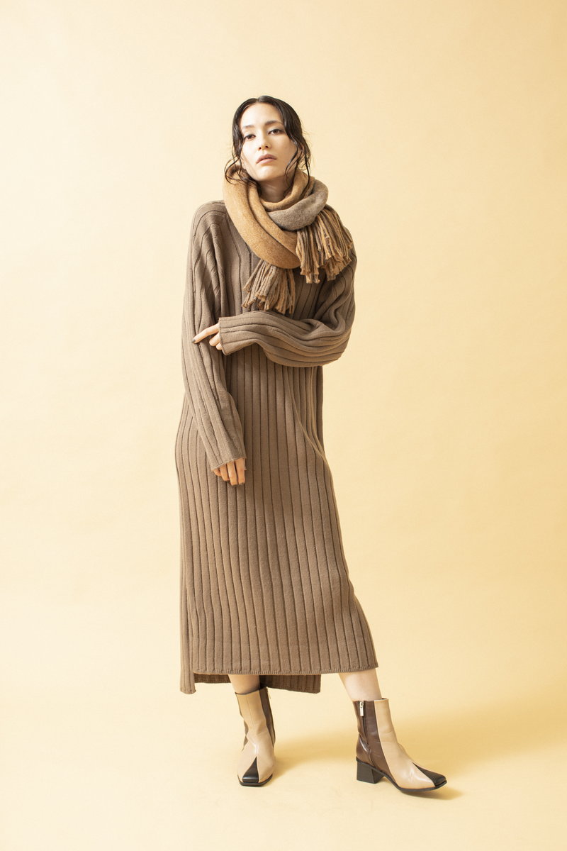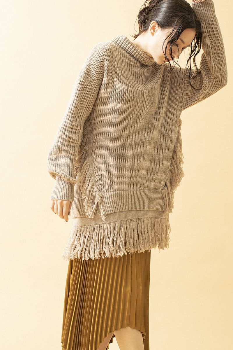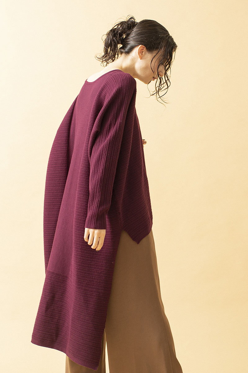柔らかなハイゲージニットなら女性らしさも高まる。