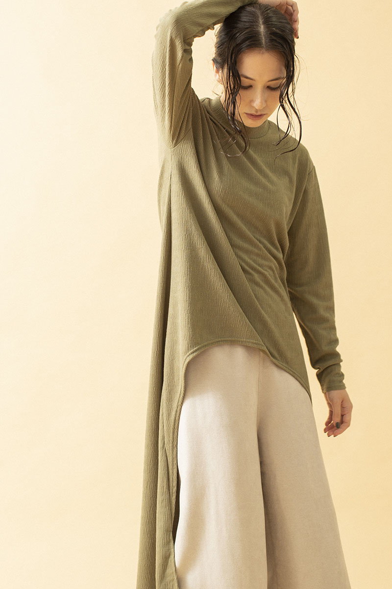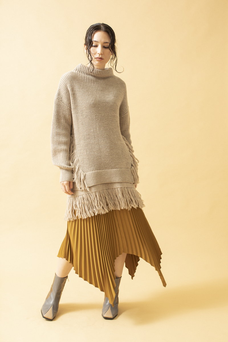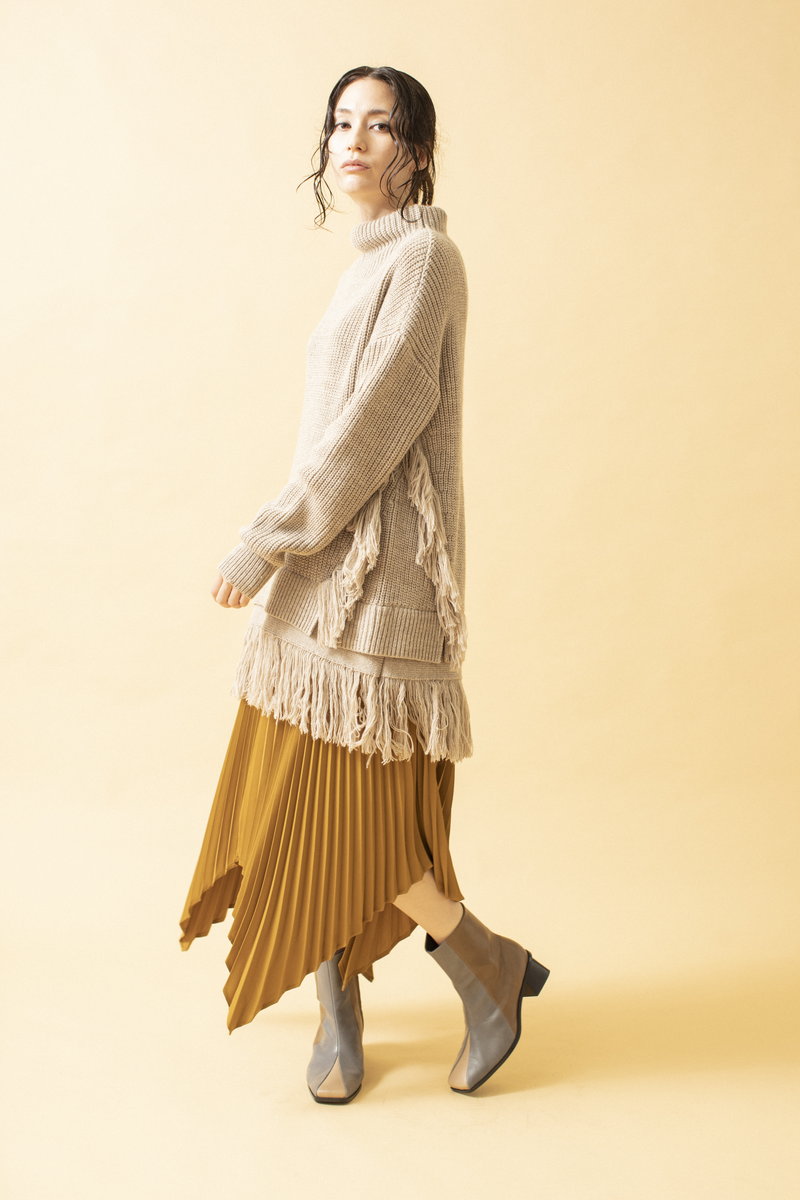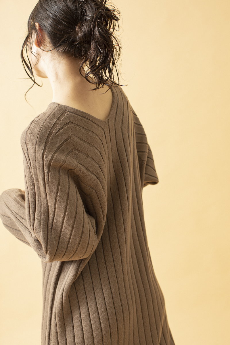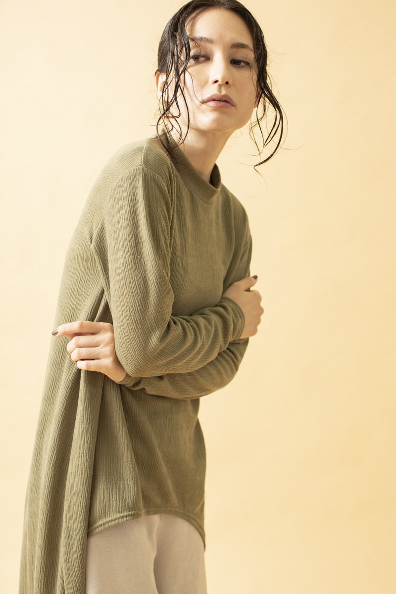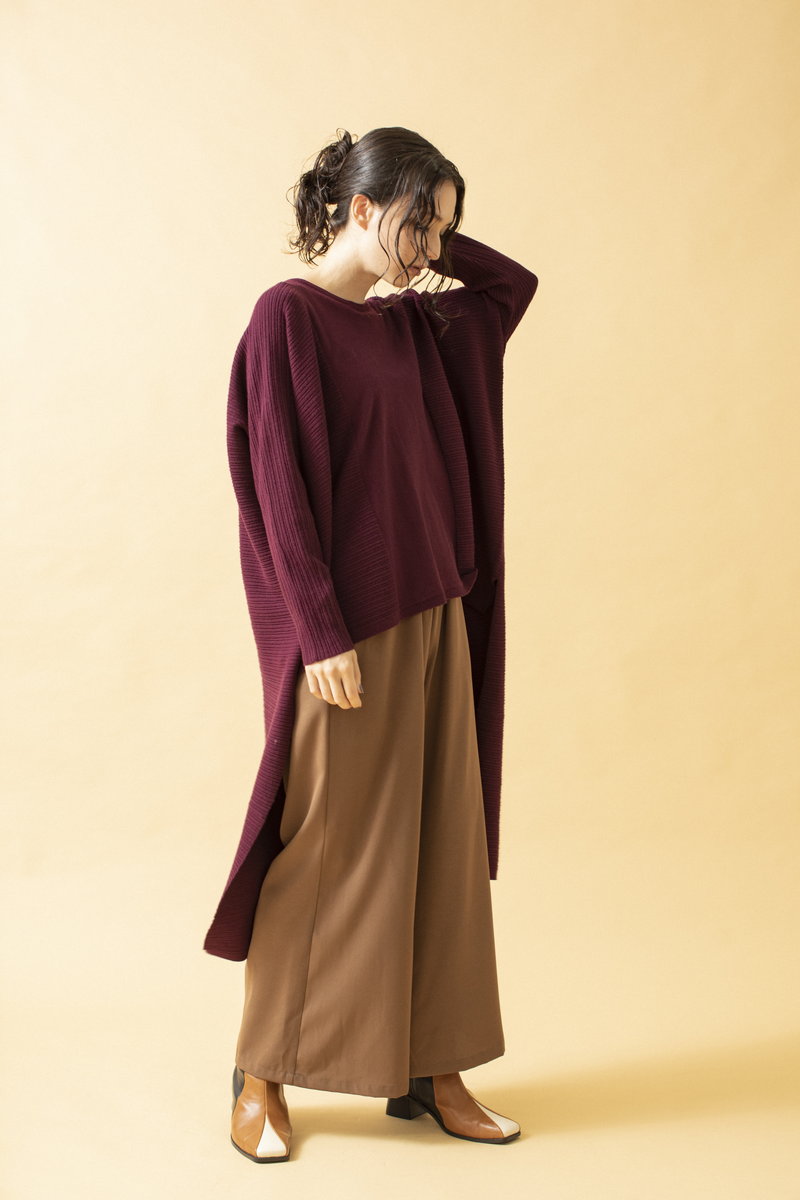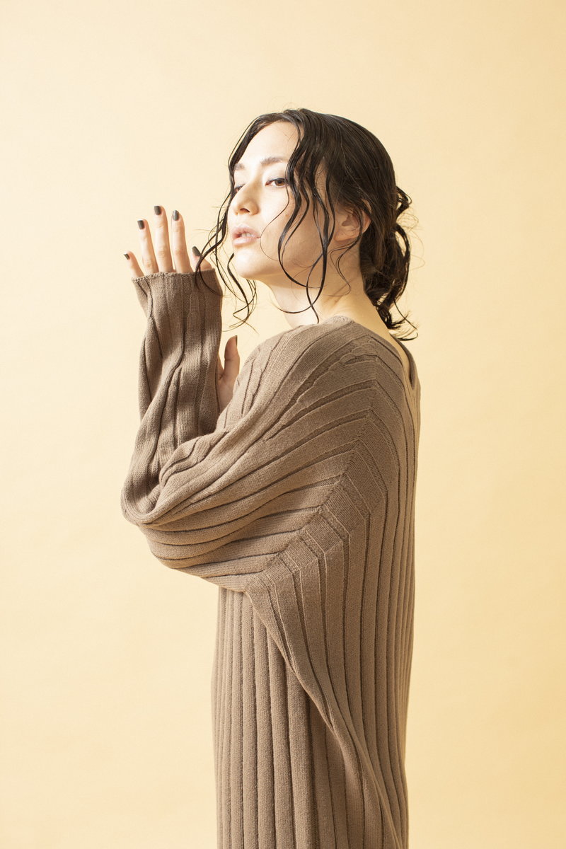 柔らかなハイゲージニットなら女性らしさも高まる。
