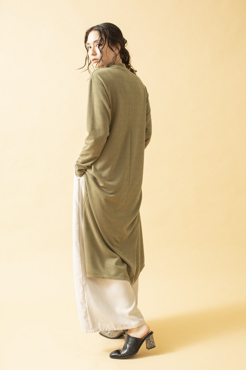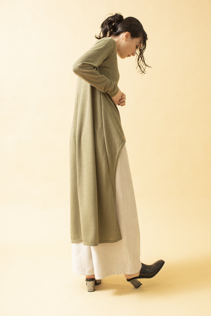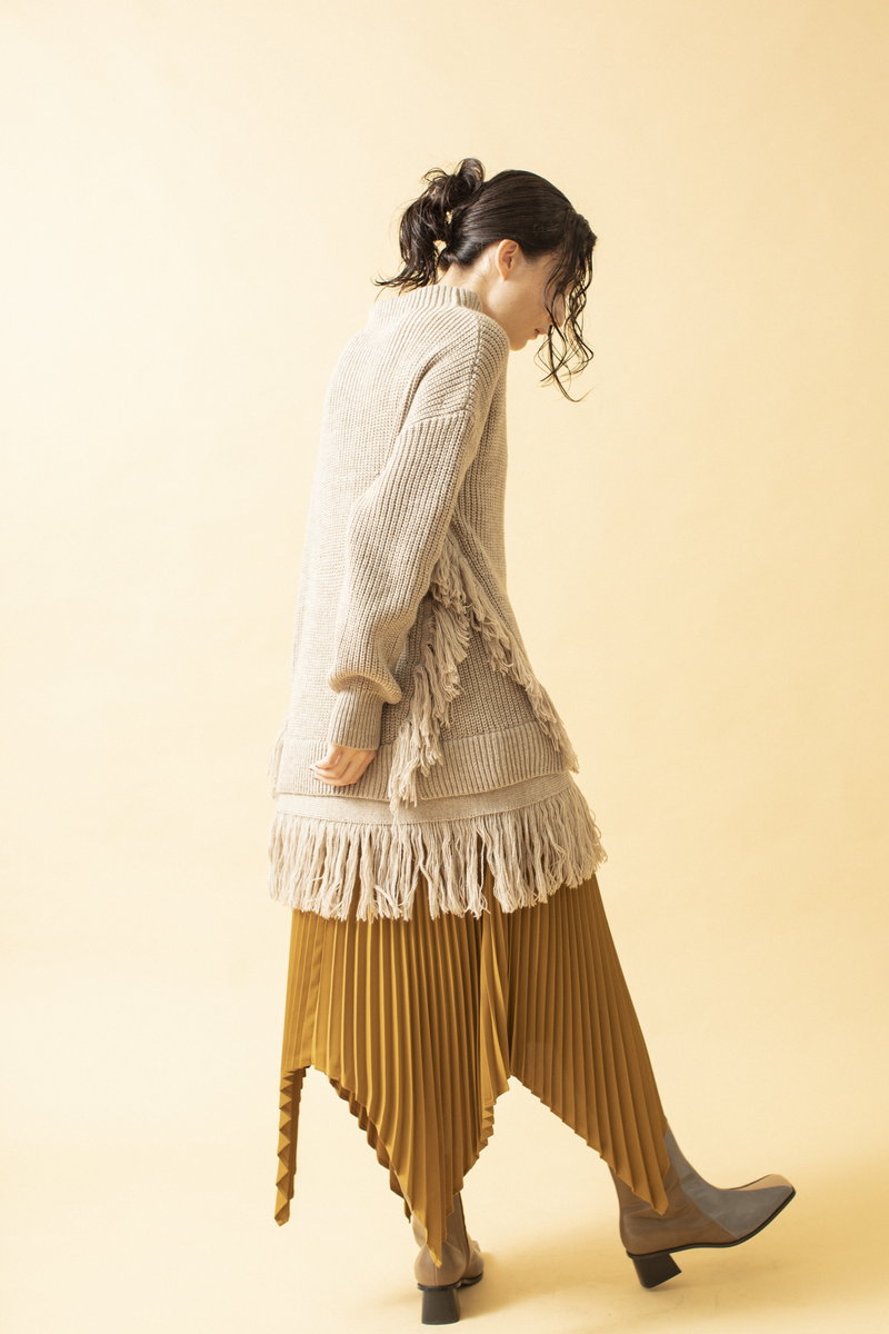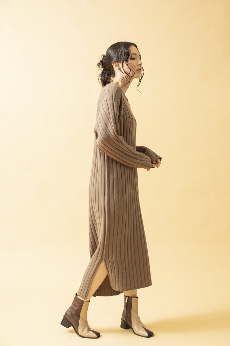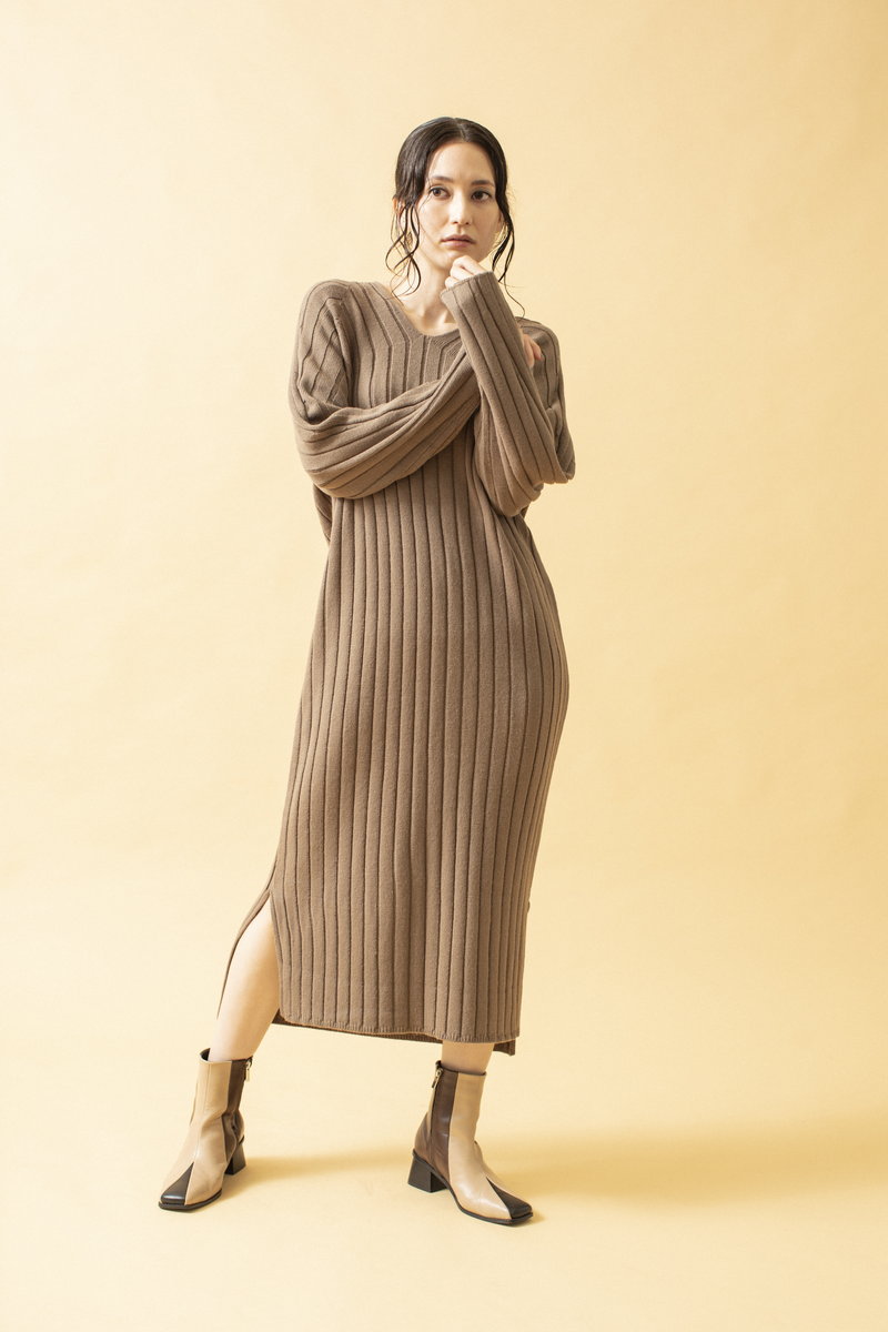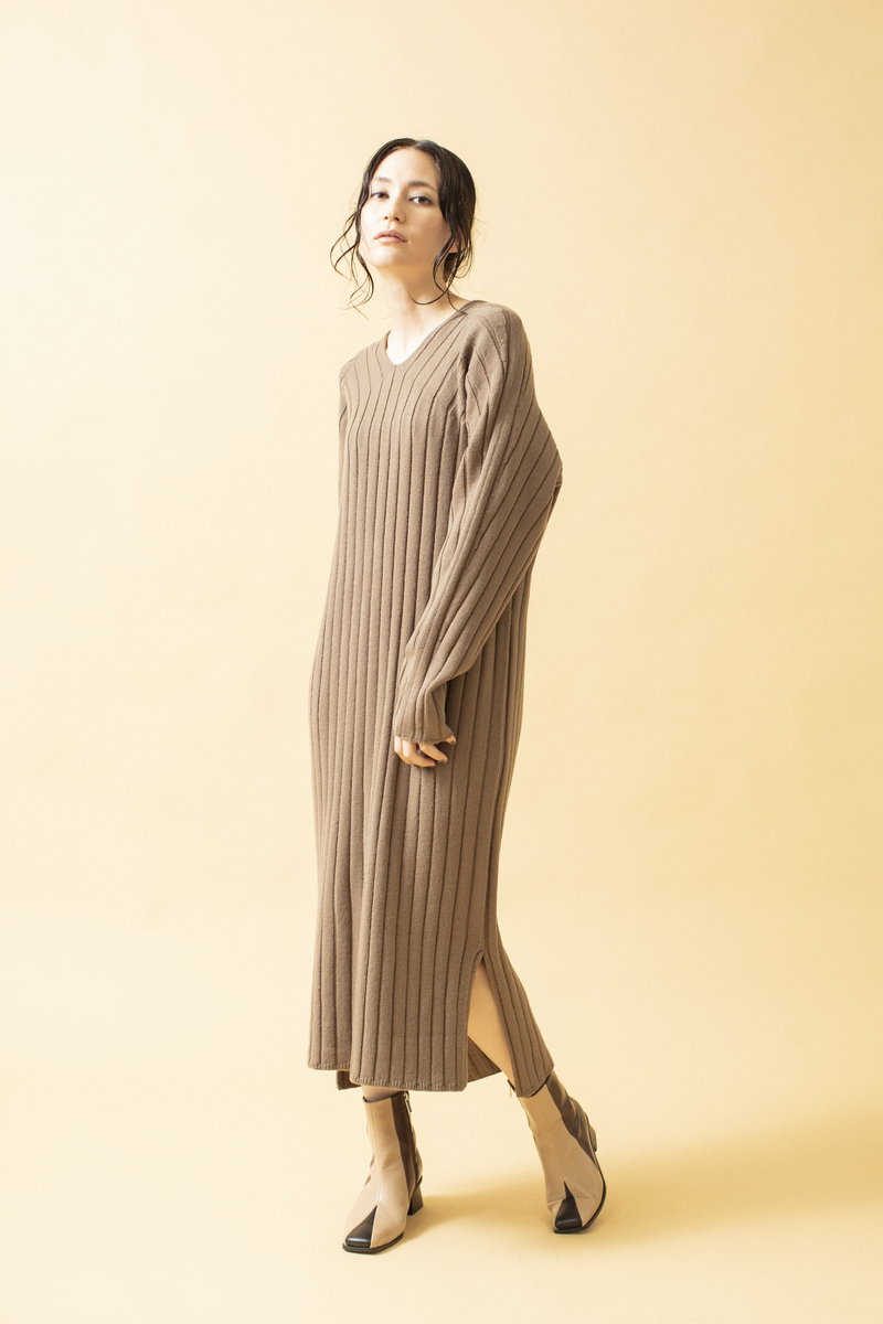 柔らかなハイゲージニットなら女性らしさも高まる。