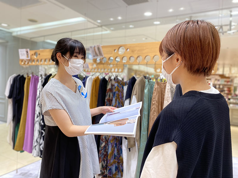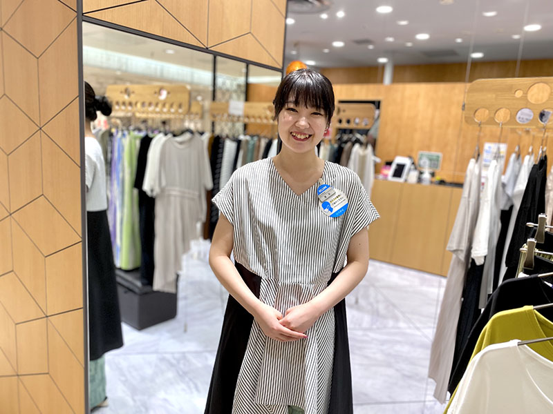 お店には、正社員・アルバイト・パートスタッフもおりますが、お客様にとってはあまり関係のない事。どのスタッフが対応しても、お洋服の魅力を伝えたり、お買い物を楽しんで頂くよう努めるのは変わりません。 正社員になってからは、もっとお店全体の事や店長のサポートなど、より多くの事を考え、行動するようになりました。 今はコロナ禍でお店の状況も変わり、SNSを通じてお客様とのコミュニケーションを取ったりと、日々新しい事に挑戦しています。