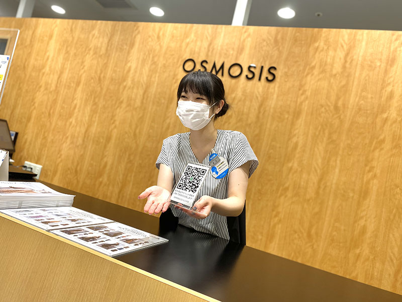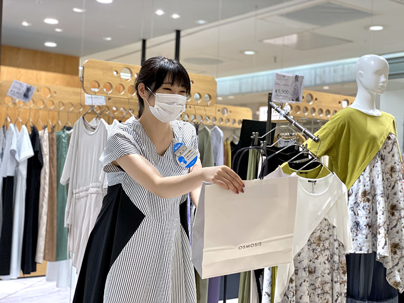 学生時代にアルバイトでアパレルでの接客業を経験し、お客様の笑顔を見られる販売員の仕事にやりがいを感じており、OSMOSISグランフロント大阪のオープニングスタッフとして入社しました。