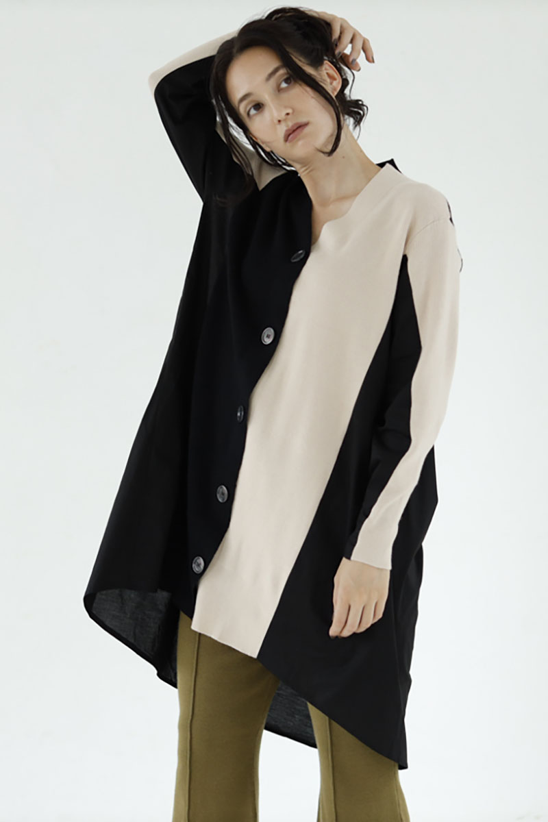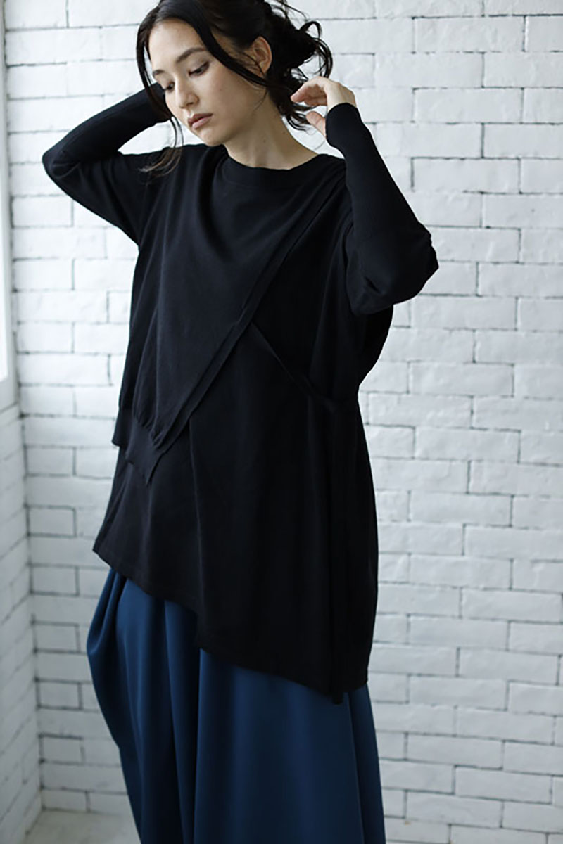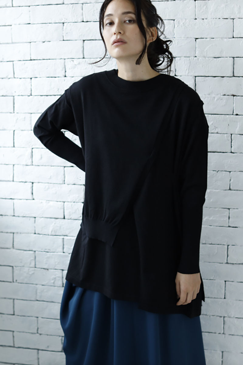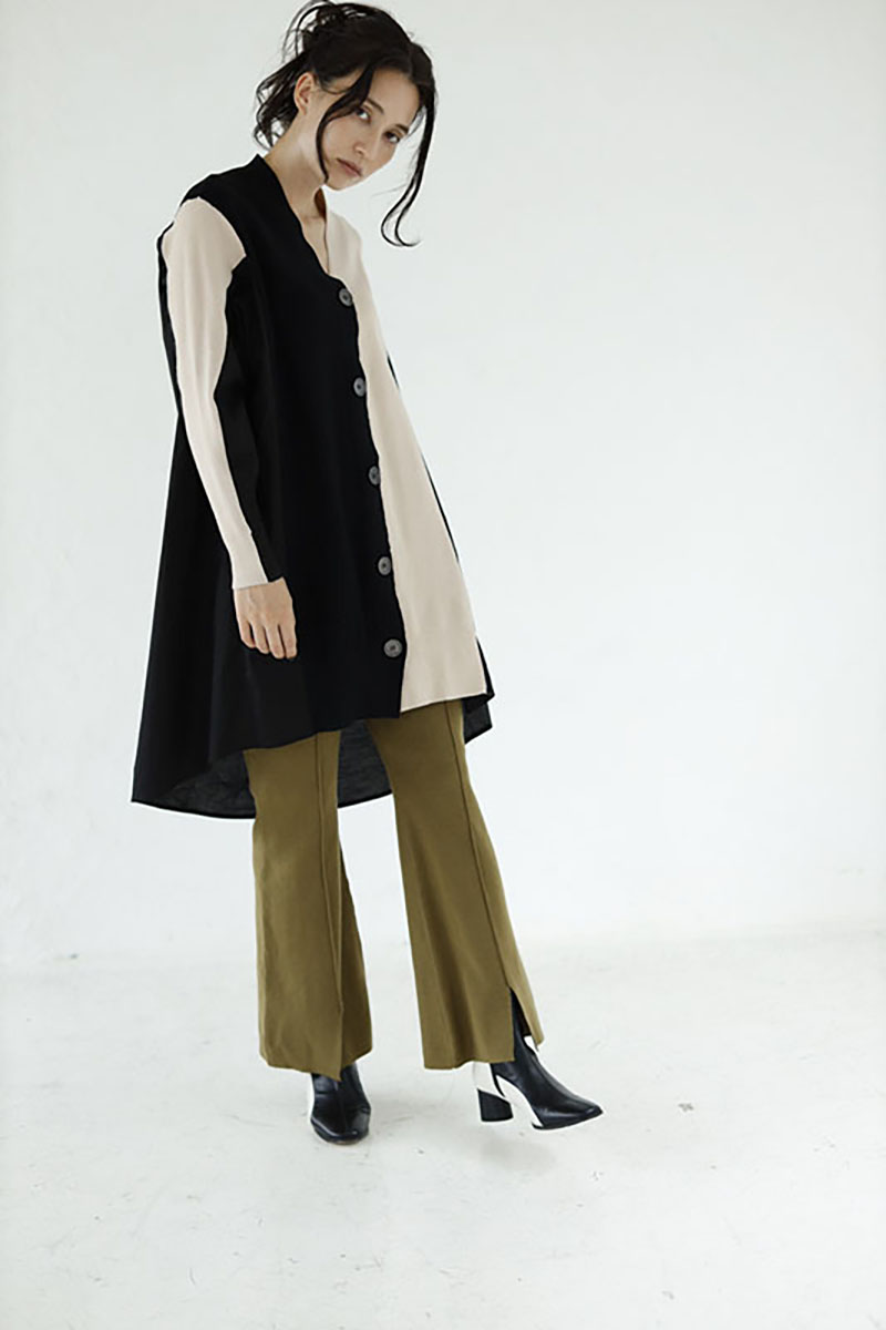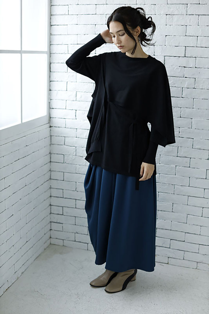 ベストもスカートもアシンメトリーで、