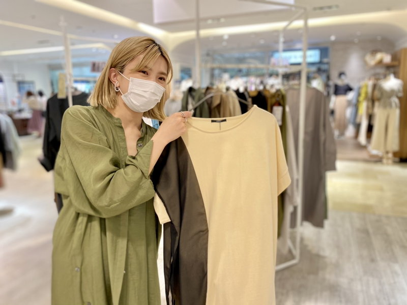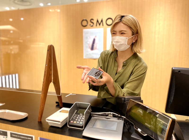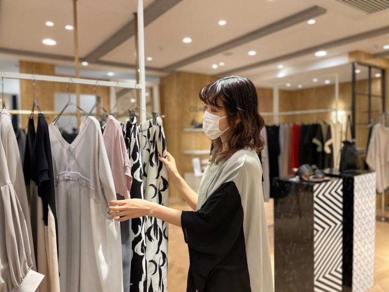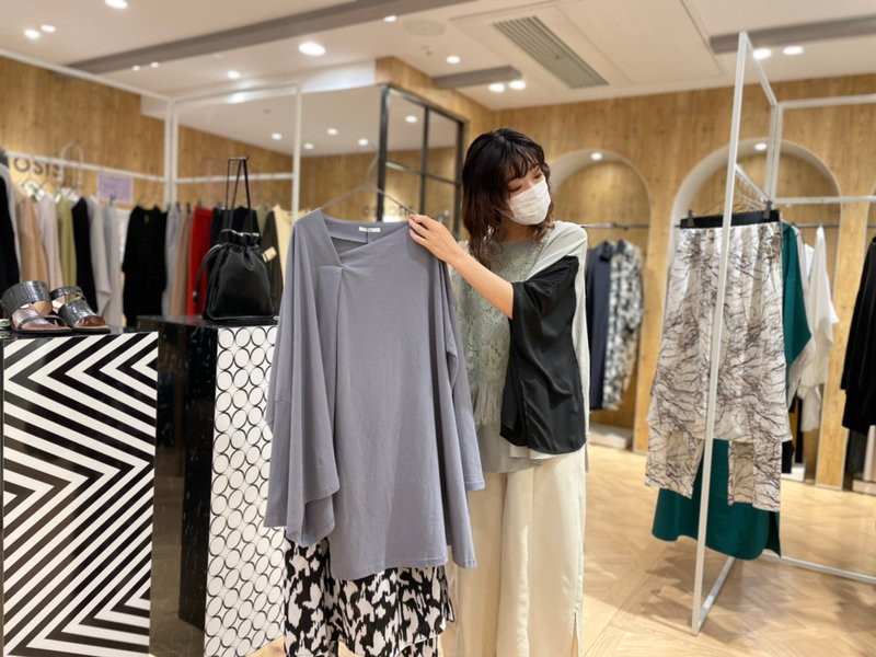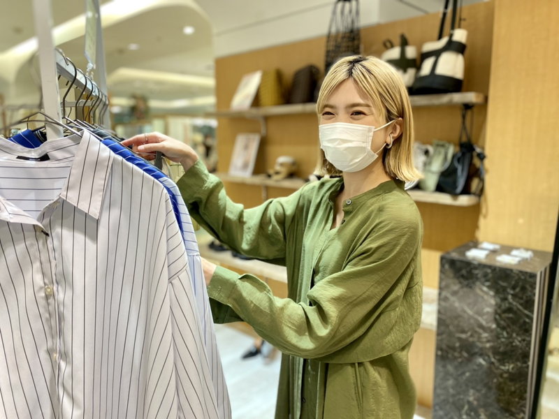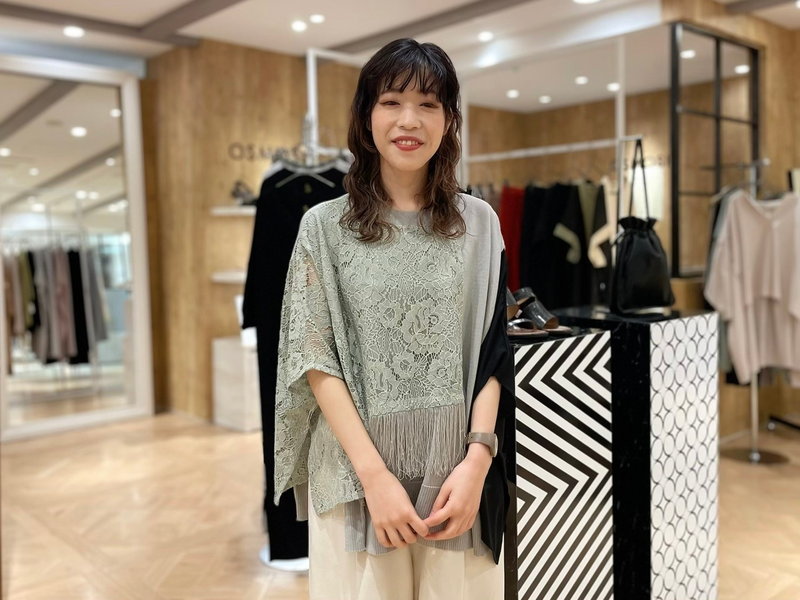 OSMOSISのデザインは、年齢や周りからの評価などに囚われず、シンプルに『私がこの服を好きだから着たい!』と思わせてくれる強さを感じ、着ることで自分らしくいられると思っています。 毎回新作が入荷する度にワクワクし 同じような思いをお客様にも感じて頂けるよう、商品レイアウトやマネキンのコーディネートなど、視覚的なアピール方法を考えたり、スタッフ同士でアイデアを出し合ってSNSを配信するのも楽しいです。