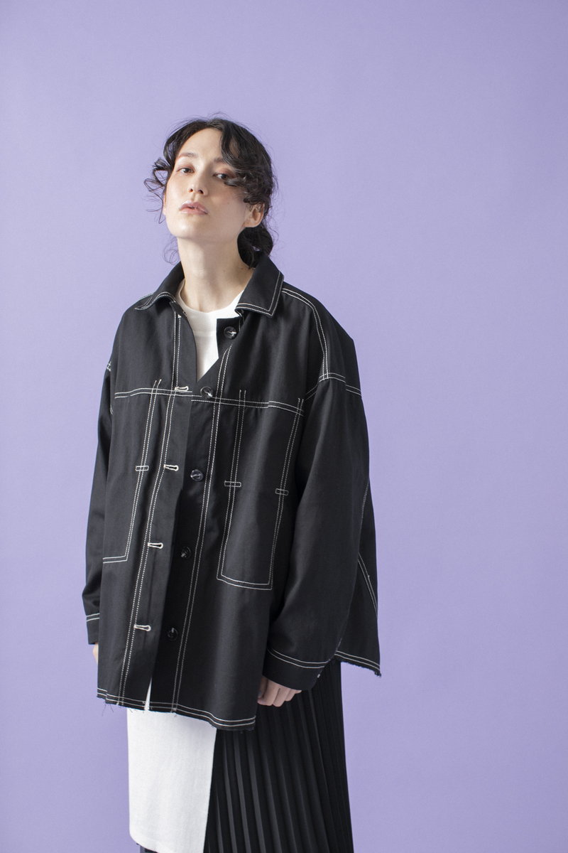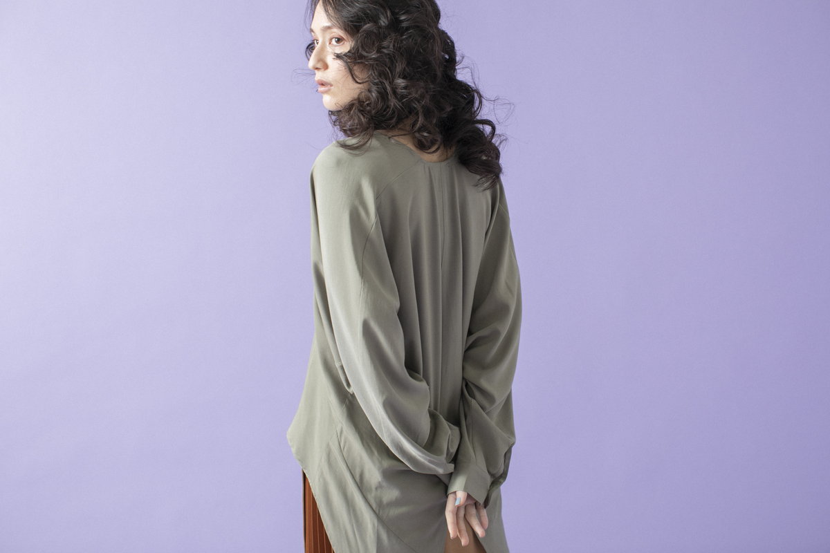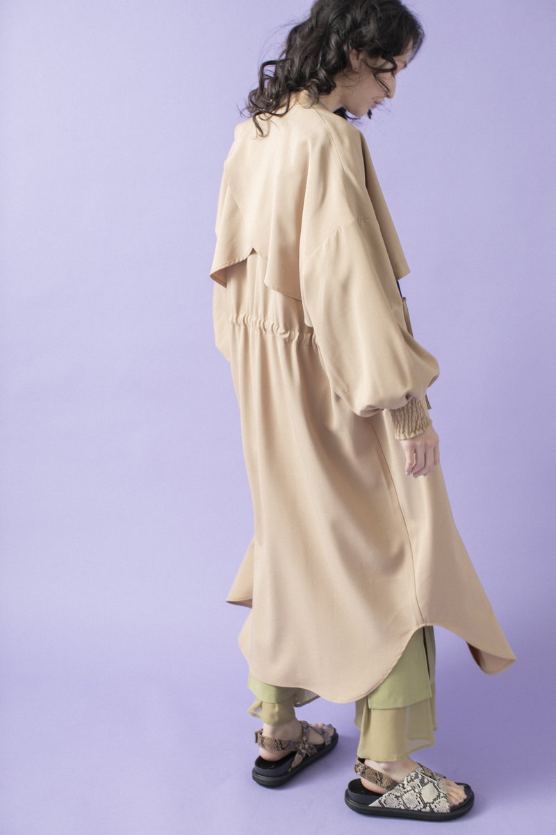後姿はトレンチをモチーフに、