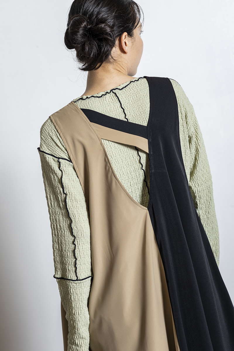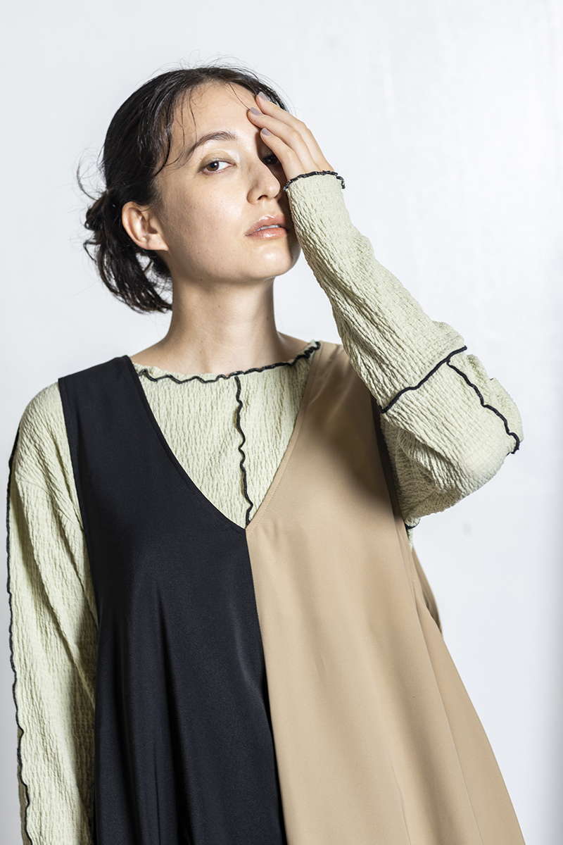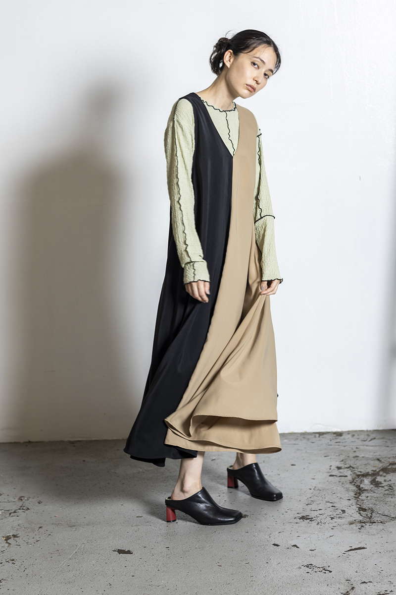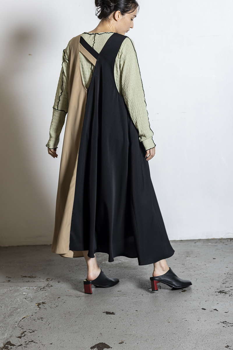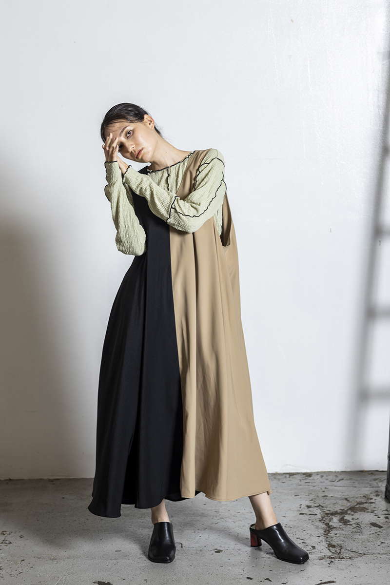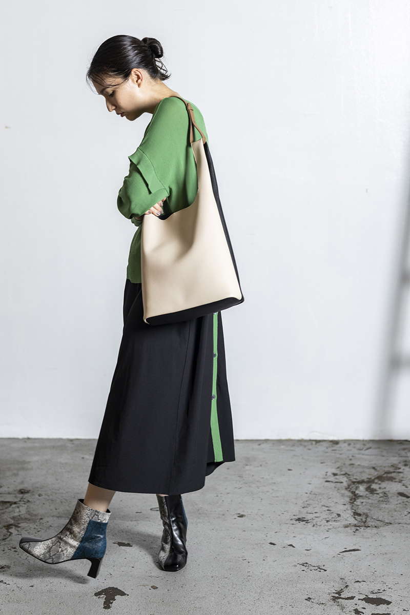 クラシカルなカラーブロックは、前後で表情が変化。