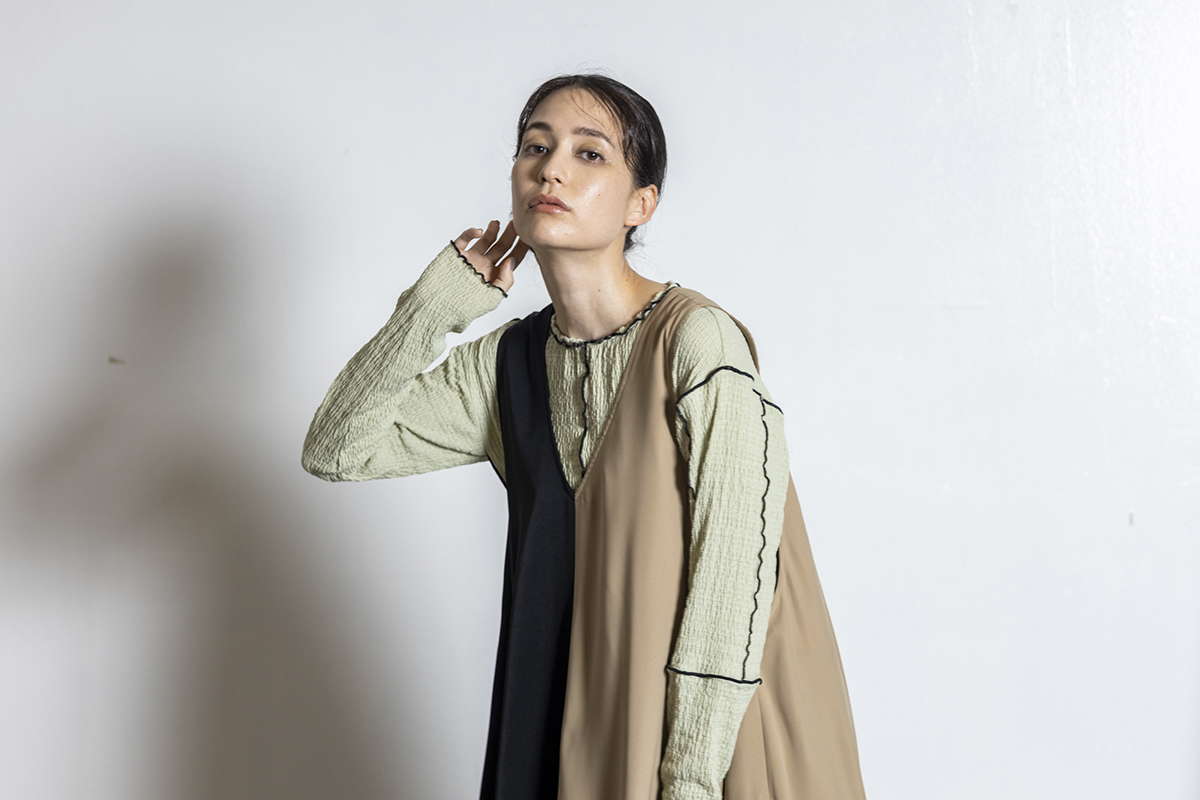 全身ワンカラーも奥行きのあるスタイルに。
