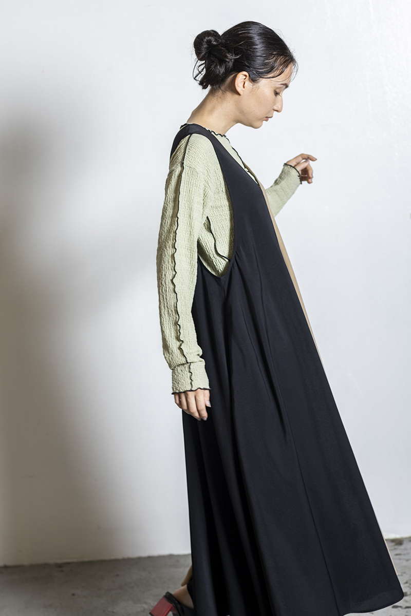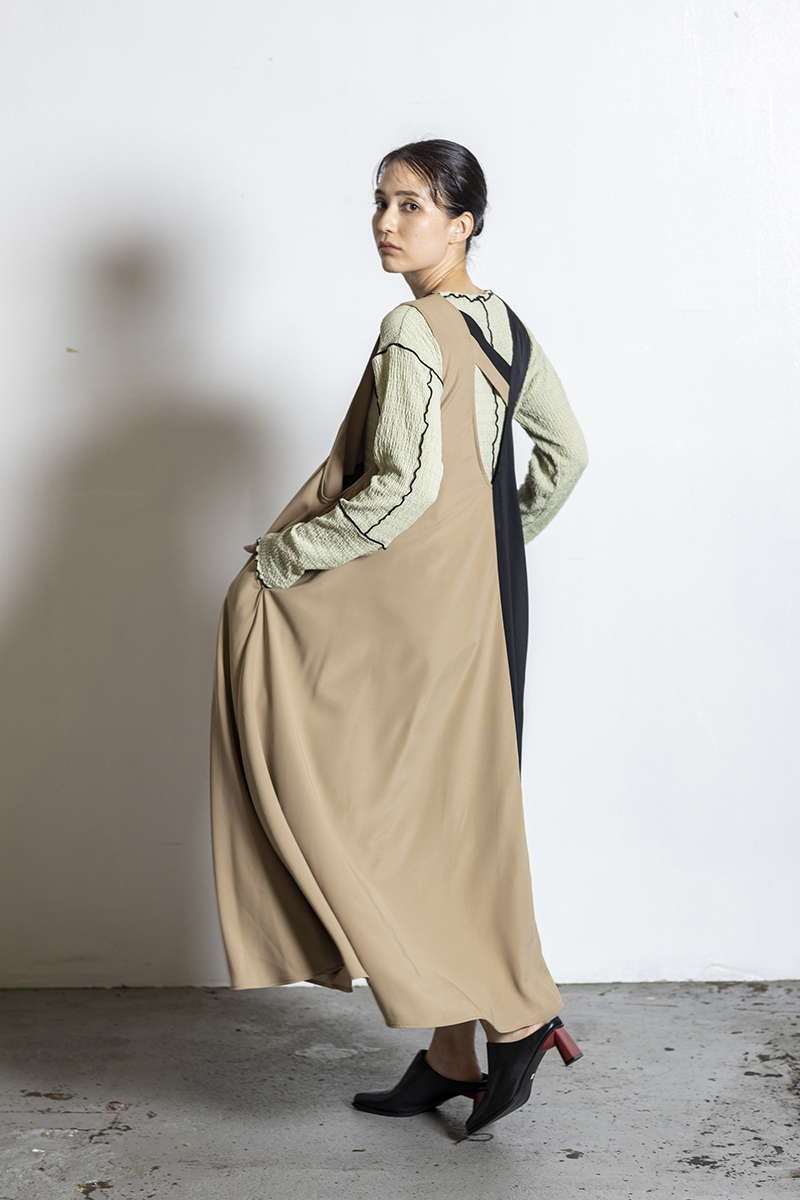 優美なフレアラインを描くワンピースには、