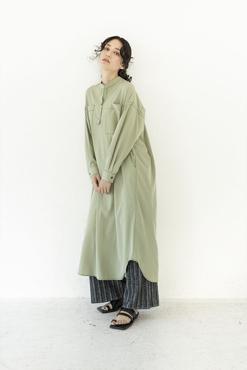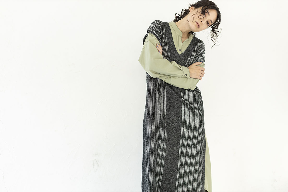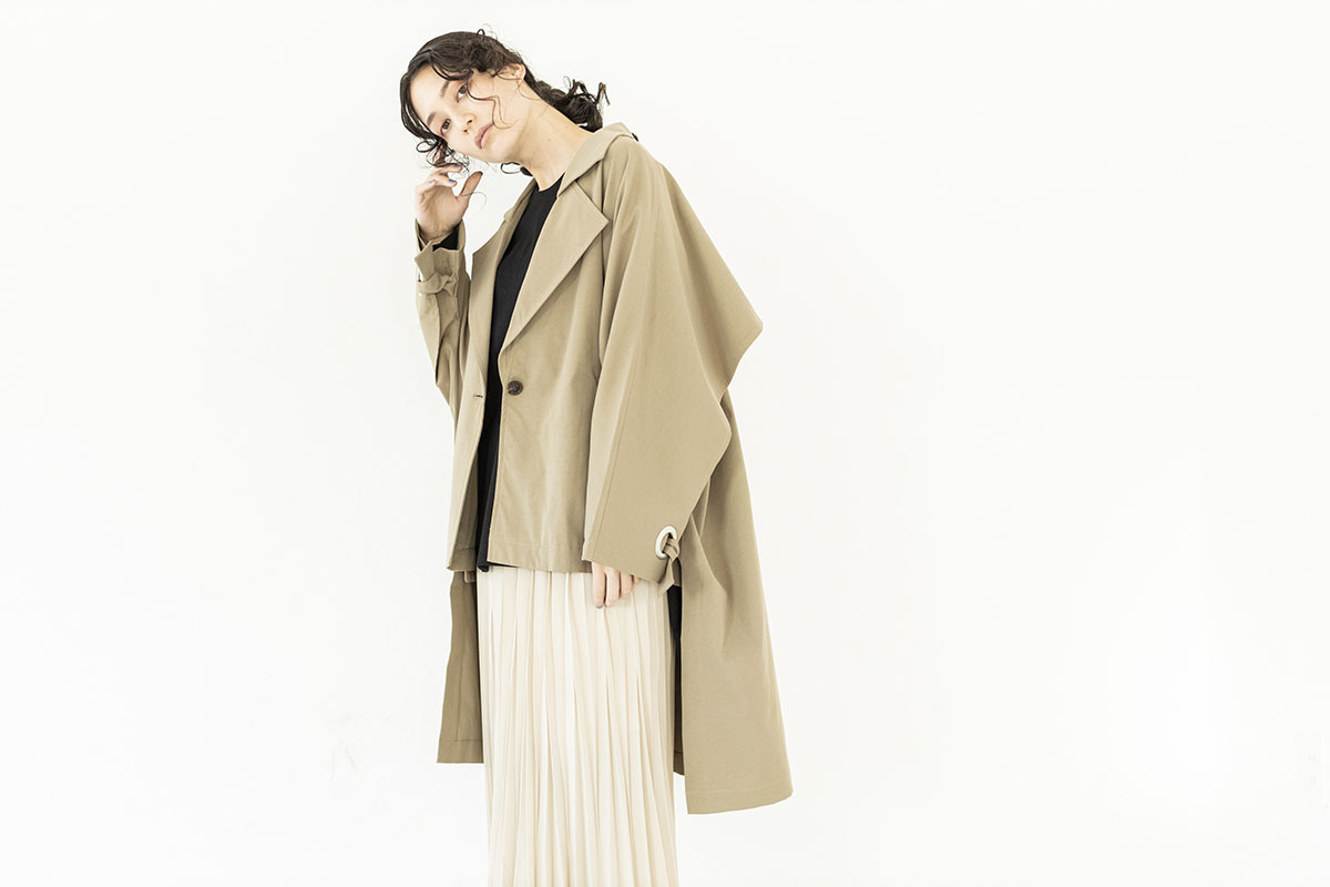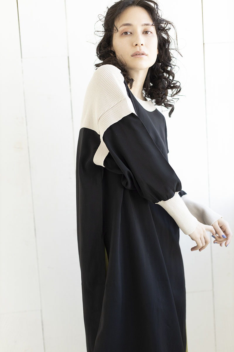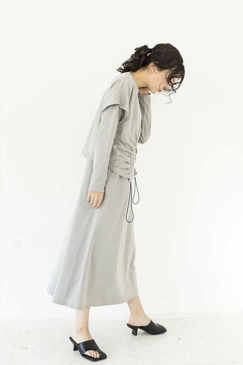 ドローコードで変化をつけたワンピースは、リラクシーなシルエットがら、しなやかな品の良い素材で凛とした表情に。
