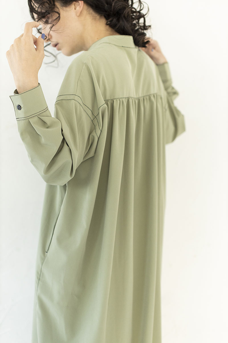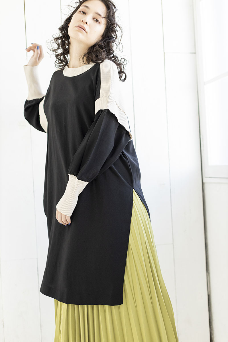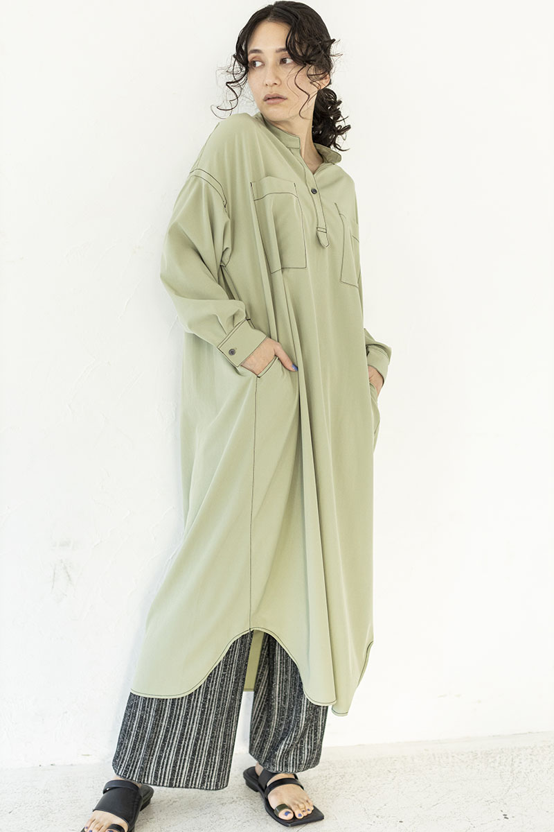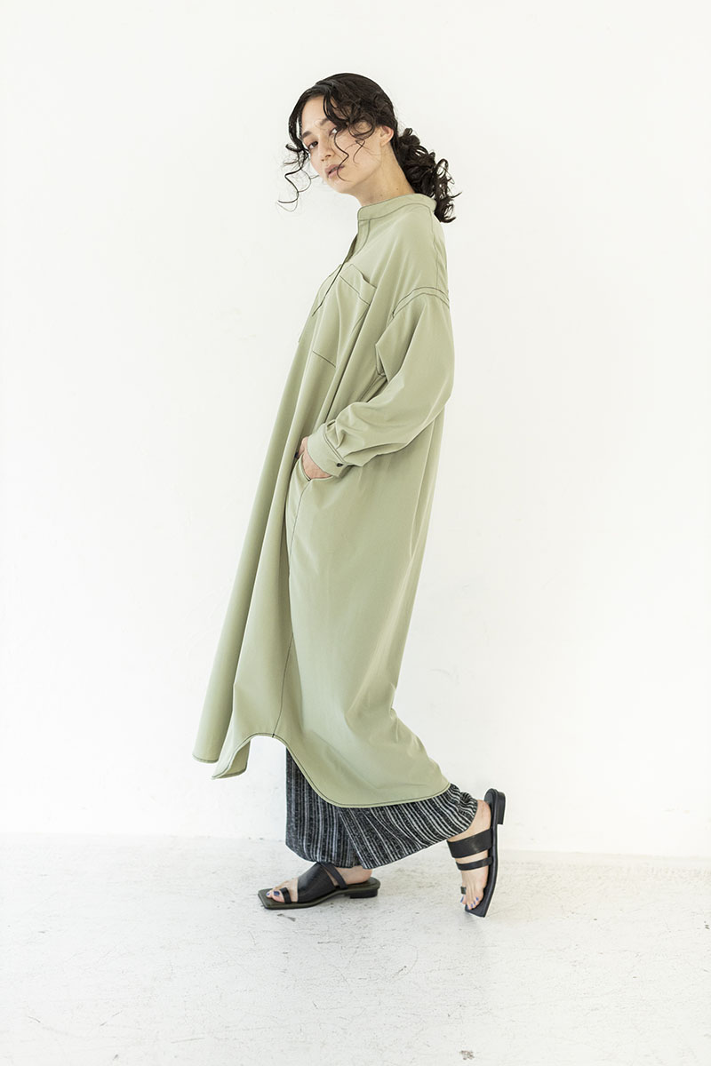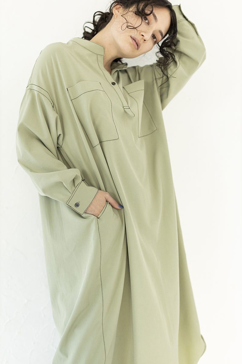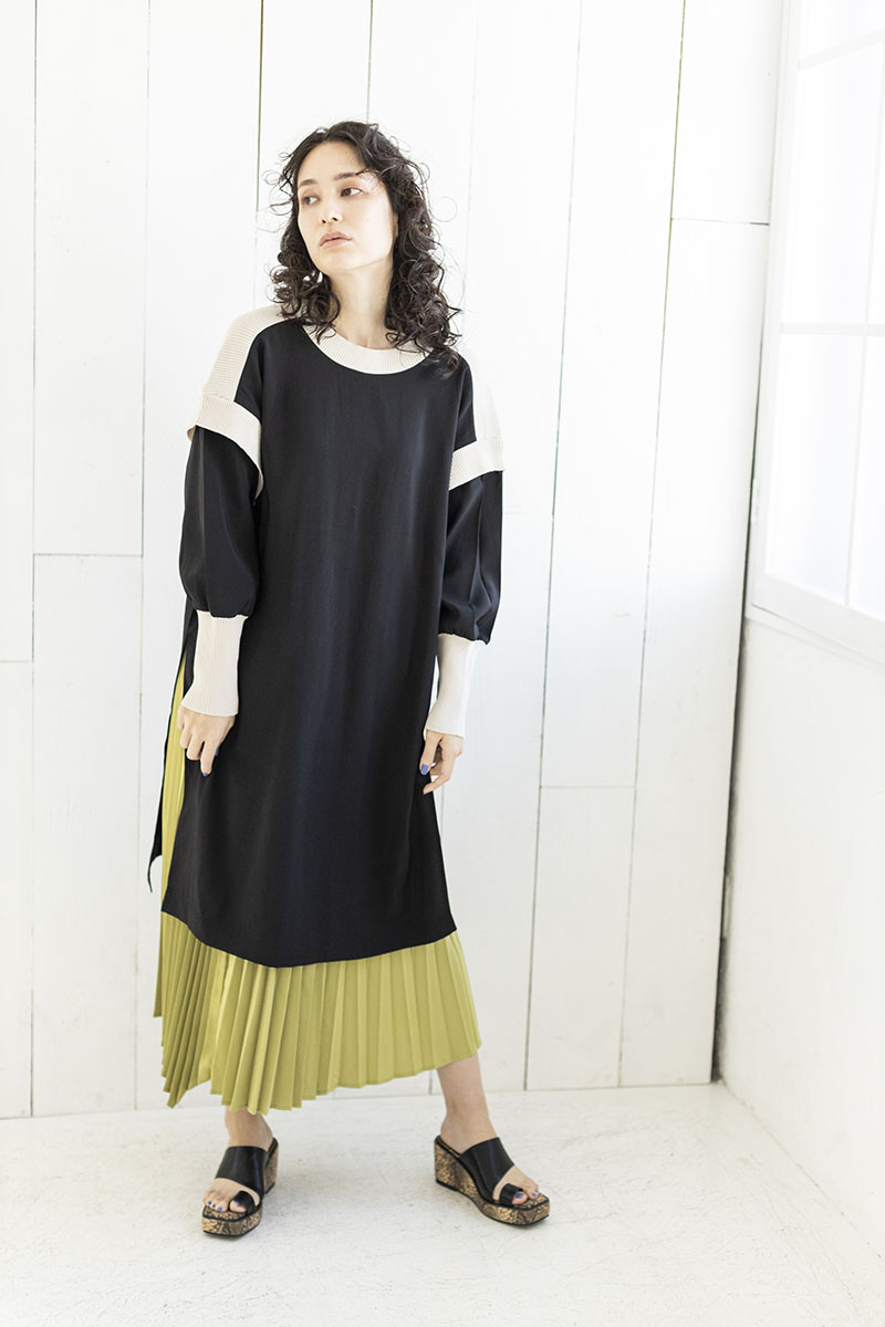 ドローコードで変化をつけたワンピースは、リラクシーなシルエットがら、しなやかな品の良い素材で凛とした表情に。